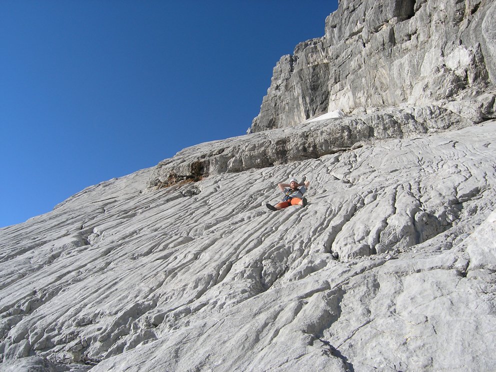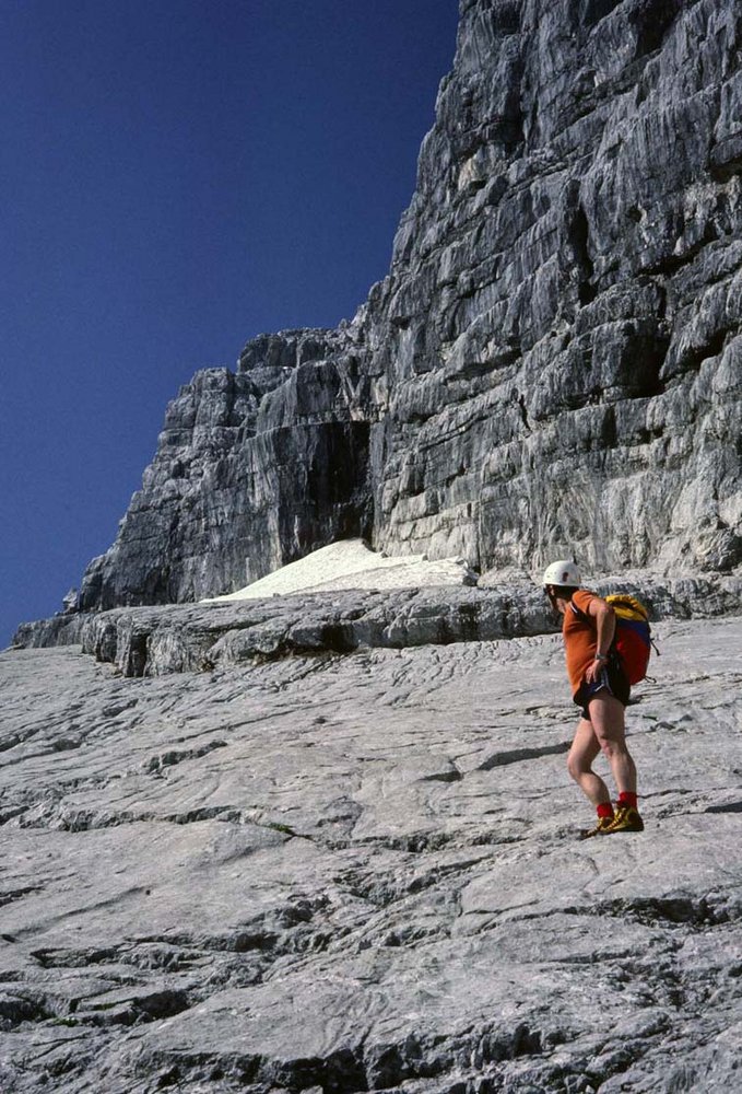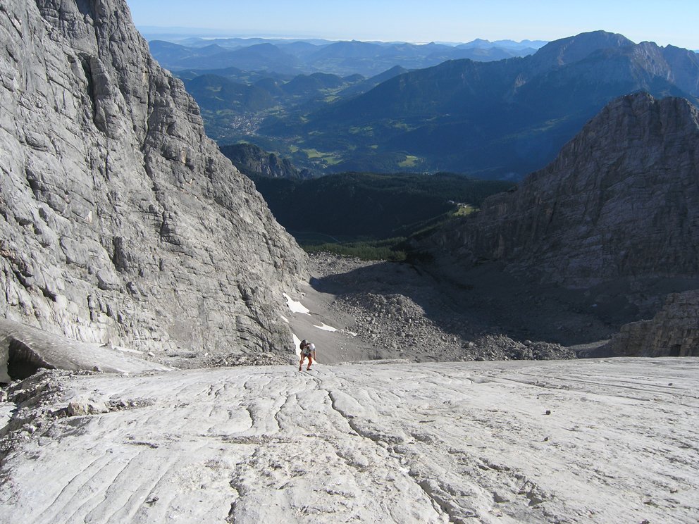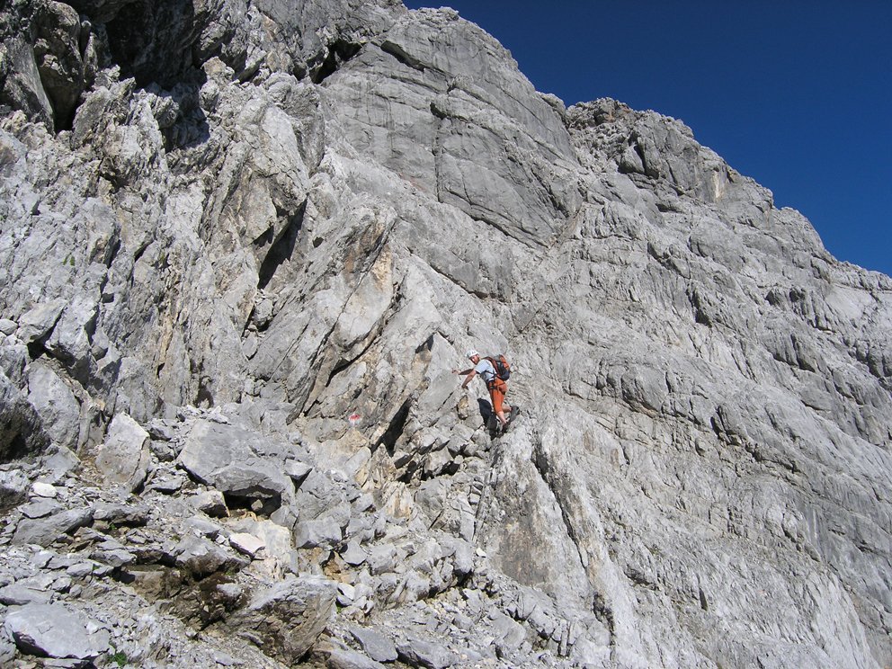 Schöne ansprechende Route, die sich ideal als Vorbereitung für die große Watzmann Ostwand eignet. Landschaftlich sehr eindrucksvoll, das Wiederband ist tlw. autobahnbreit, man weiß nicht wirklich ob man gehen oder klettern soll. Gewisser Spürsinn in der Routenfindung ist trotz der roten Punkt- und Steinmannmarkierung gefragt. Auf Bändern und Platten geht es durch die mächtige Wand. Ideal auch in Kombination mit dem Mountainbike als üppige Tagestour machbar. Vom oberen Abschnitt hat man einen eindrucksvollen Blick in die "große" Ostwand unter der Südspitze.