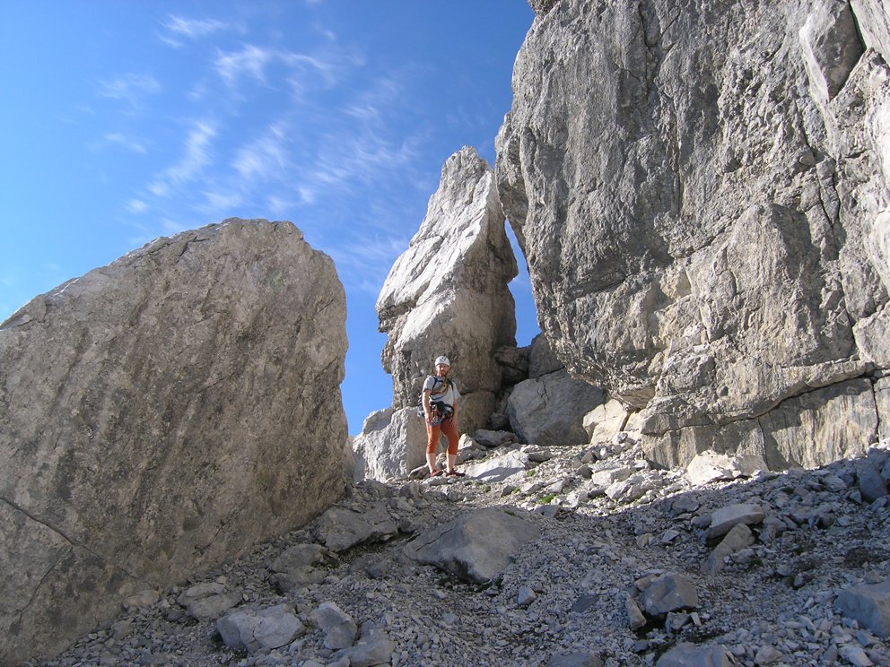 Einige Stelle 3-, meist aber um I-II und Gehgelände