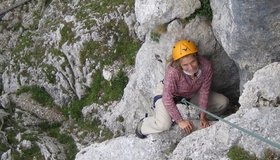 5 Express, Klemmkeile, Friends, verschieden lange Bandschlingen und Helm.
