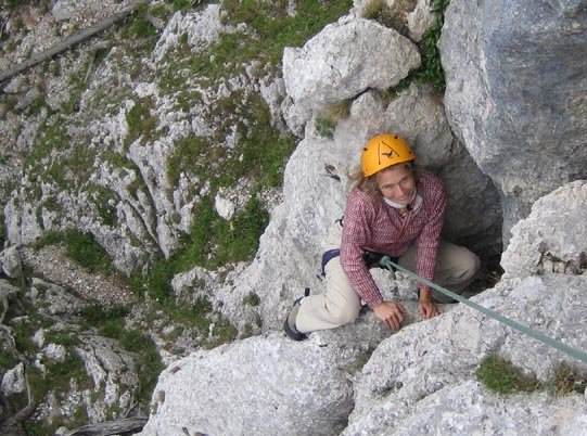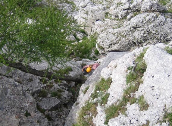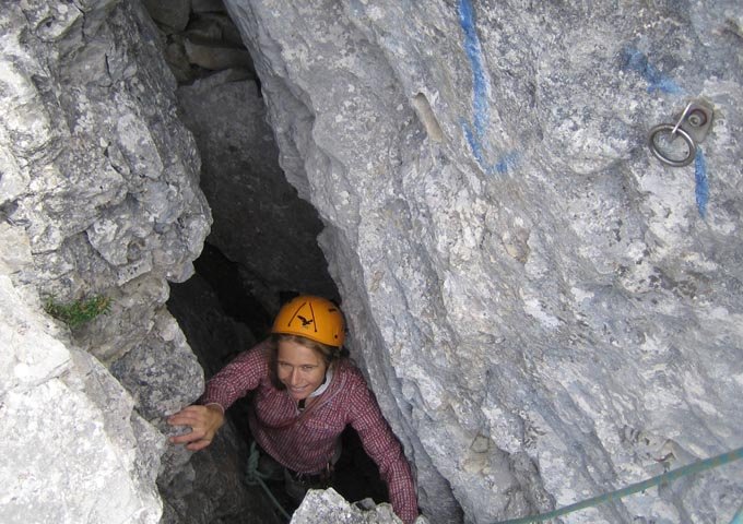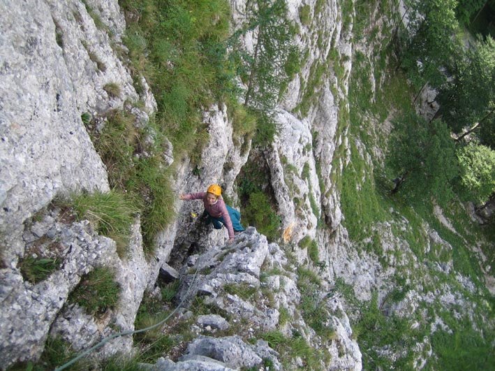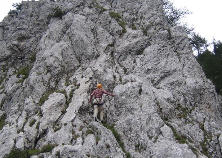 Steinschlaggefahr durch brüchigen Fels. Nach Regenfällen länger nass.