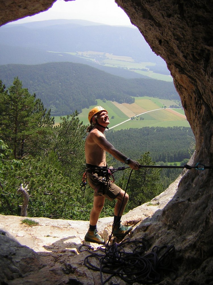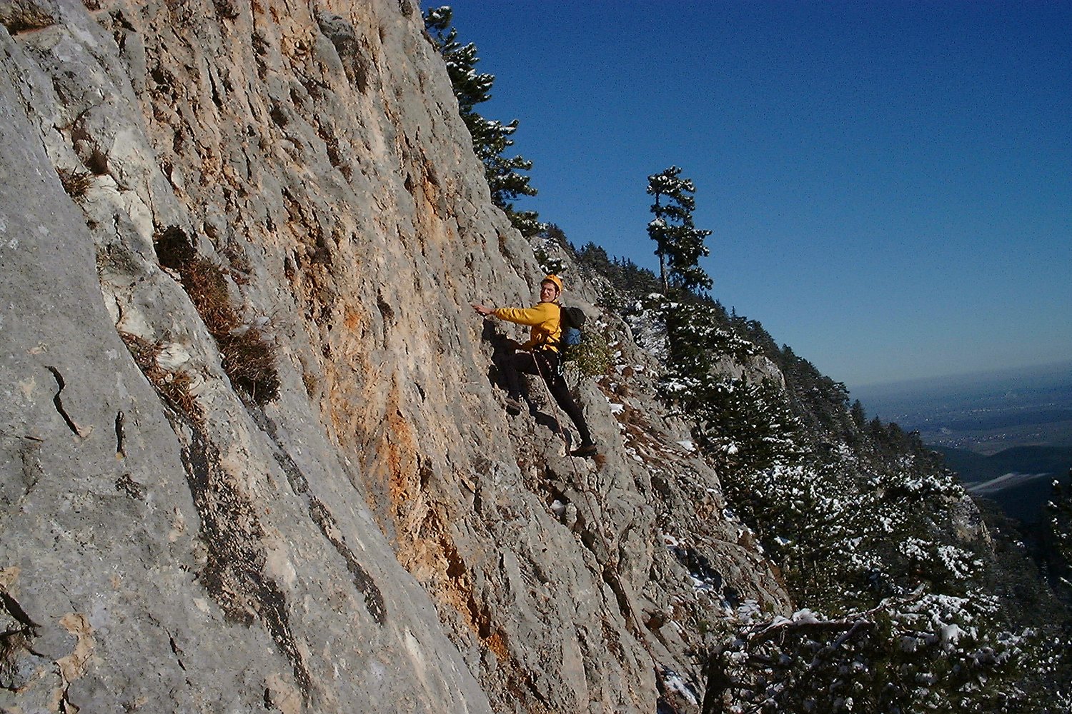 Einer der beliebtesten Anstiege in dieser Schwierigkeit auf der Hohen Wand. Dieser klassische Anstieg aus dem Jahr 1911 wurde von dem Hohe Wand Pionier A. Wildenauer eröffnet. Die Plattenrampe im oberen Teil der Route gehört sicher zu den besten SL im 3ten Grad auf der Hohen Wand. Die Route ist auch gut mit dem Fredsteig zu kombinieren, es sind viele Varianten möglich. Die Absicherung der Route ist mit Klebebohrhaken etwas aufgebessert worden.