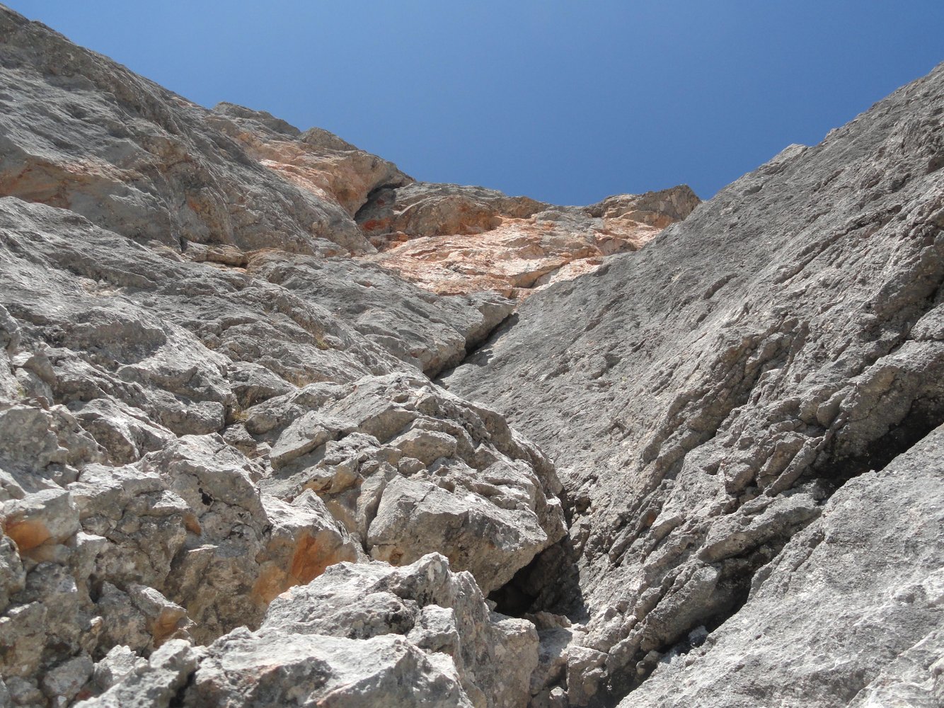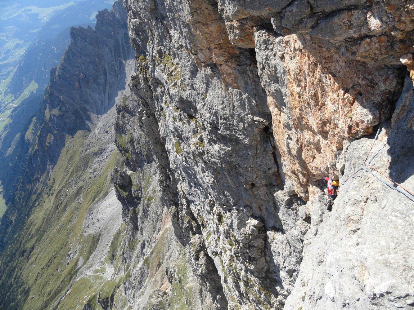 Durch die Südwand des Wildalmkirchls führt eine auffällige, teils überhängende Verschneidung zwischen „Turm“ und „Dach“. Geniale Kletterei in festem Fels und in einsamer Umgebung. Auf jeden Fall etwas für Liebhaber mobiler Sicherungsmittel und langer Zustiege.