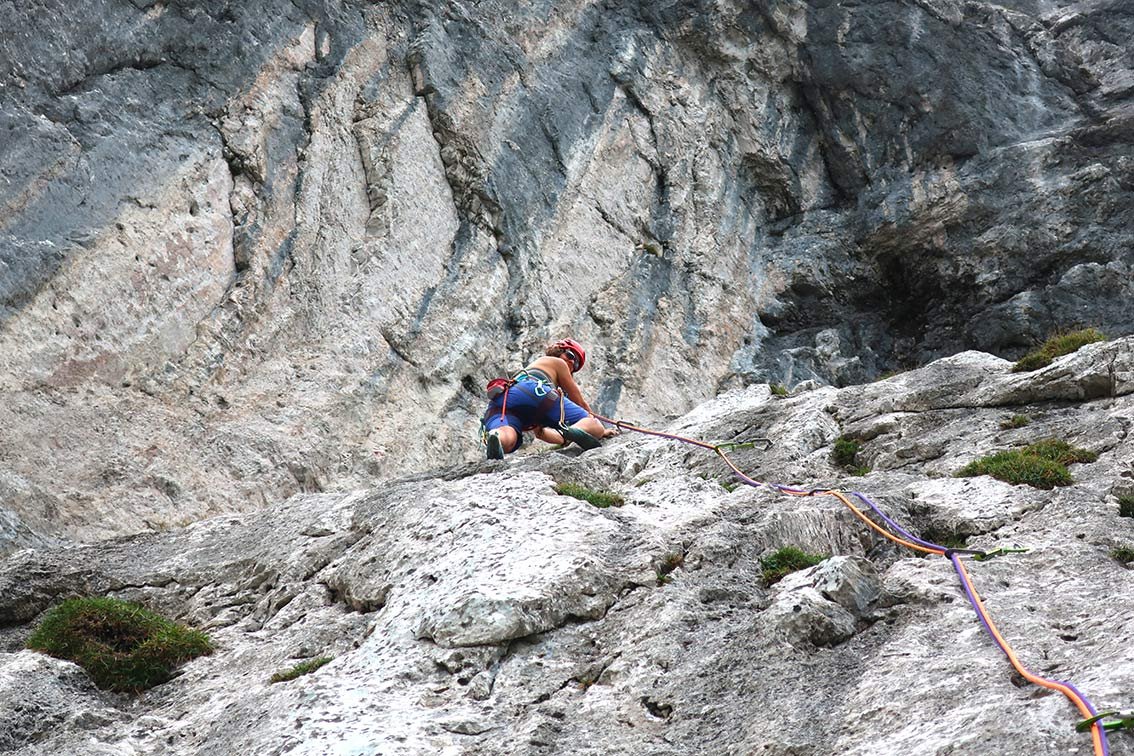 60 m Doppelseil , 12 bis 19 Expressschlinge und Helm.