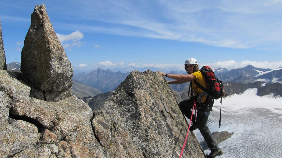 Sehr schöne Kletterei über den Ostgrat zum Gipfel der Wilden Leck. Der Fels ist immer kletterfreundlich und man kann meist gut mit Schlingen sichern. Auf der Route genießt man immer ein tolles Panorama in die Gletscherwelt der Stubaier Alpen. Der eigentliche Grat hat ca. 250 Hm, gesamt sind es von der Amberghütte ca. 1360 Hm. Die Tour wird von konditionsstarken Bergsteigern auch vom Tal aus gemacht - mit dem Bike bis in den flachen Boden nach der Ambergerhütte, das sind dann aber satte 1980 Hm. Wer es etwas gemütlicher haben will startet also von der Ambergerhütte, diese ist auch ideal mit dem Mountainbike zu erreichen.