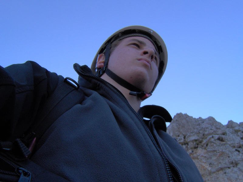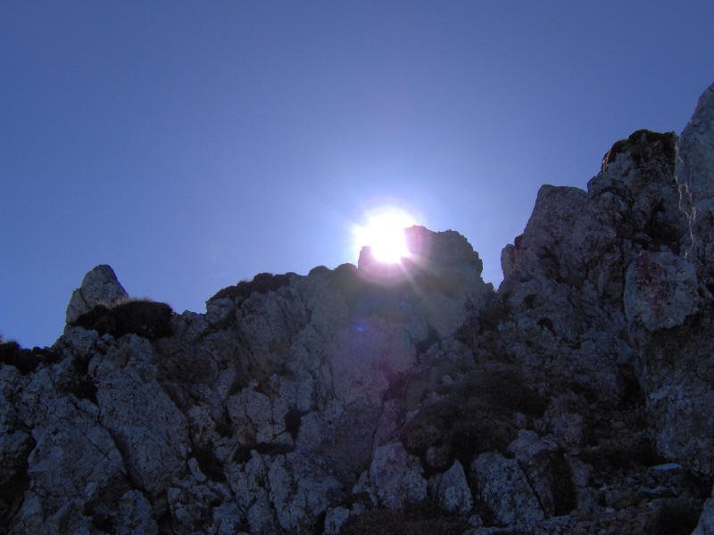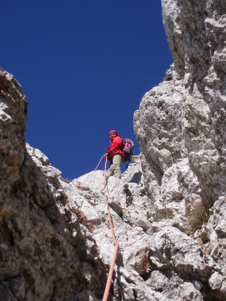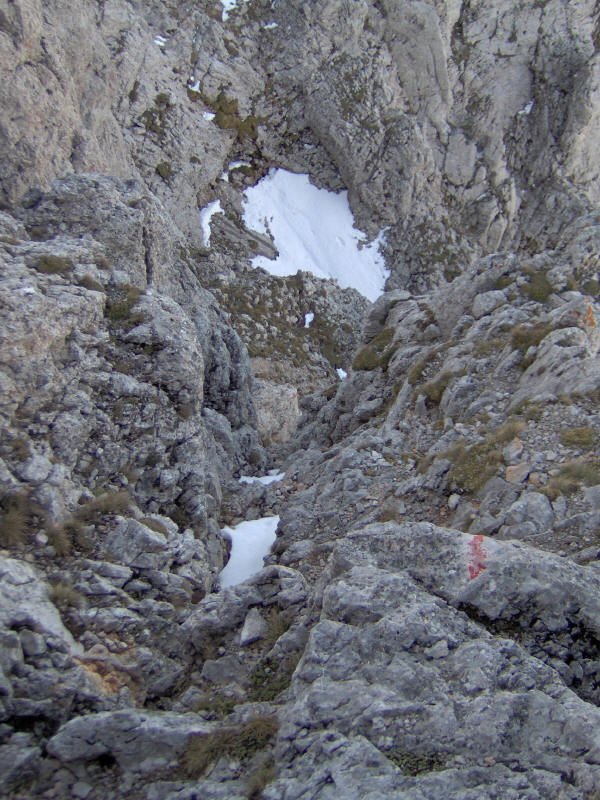 Am besten über den Gamsecksteig, (B) ein netter Klettersteig, der ca. 350 m rechts vom Einstieg beginnt. (Tafel und Markierung).