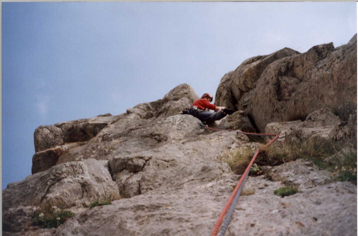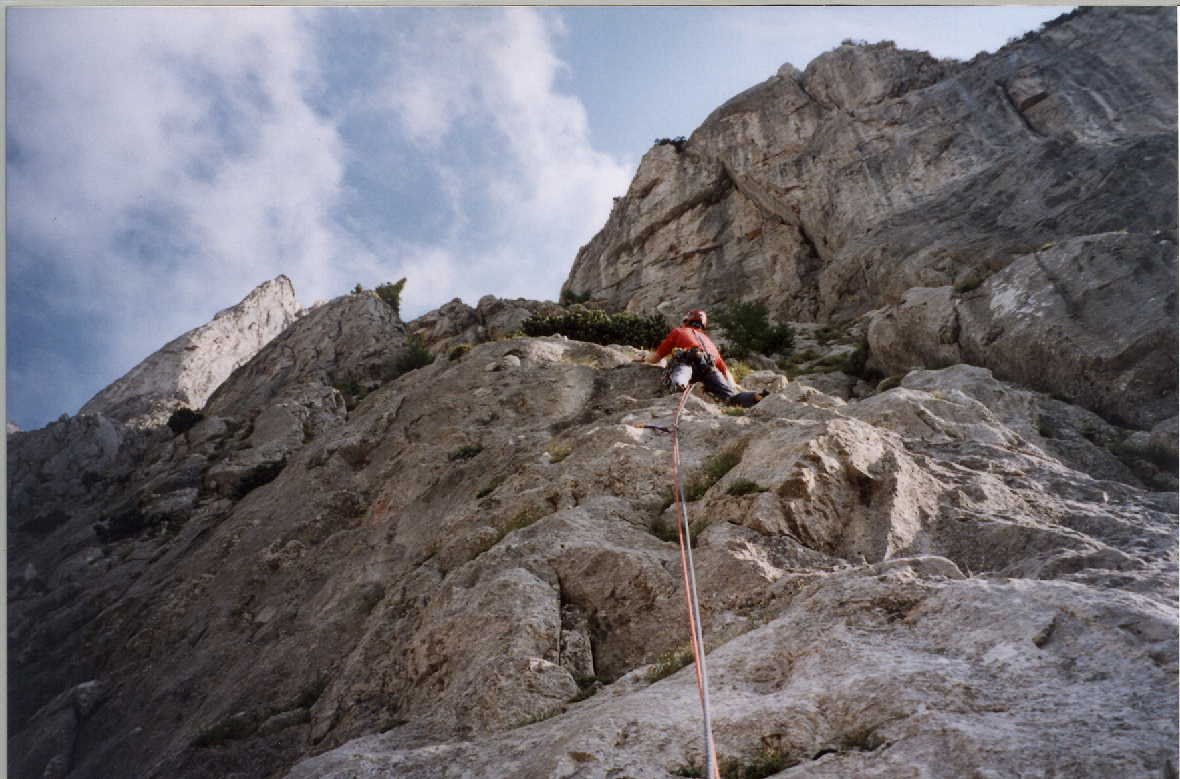 Die Route ist mit Bolts abgesichert, trotzdem muß zwischen den Haken geklettert werden. Kein Plaisir. Keile und Friends lassen sich gut legen. Kletterzeit 3-4:30 Stunden