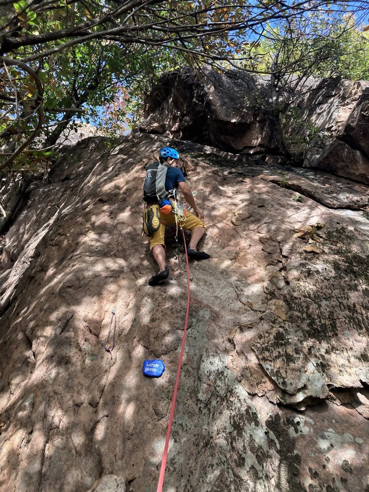 Wegen der südlichen Lage wird es im Sommer an den Felsen sehr heiß - wenn man aber einen Tag mit Wind erwischt, ist das Klettern durchaus erträglich.