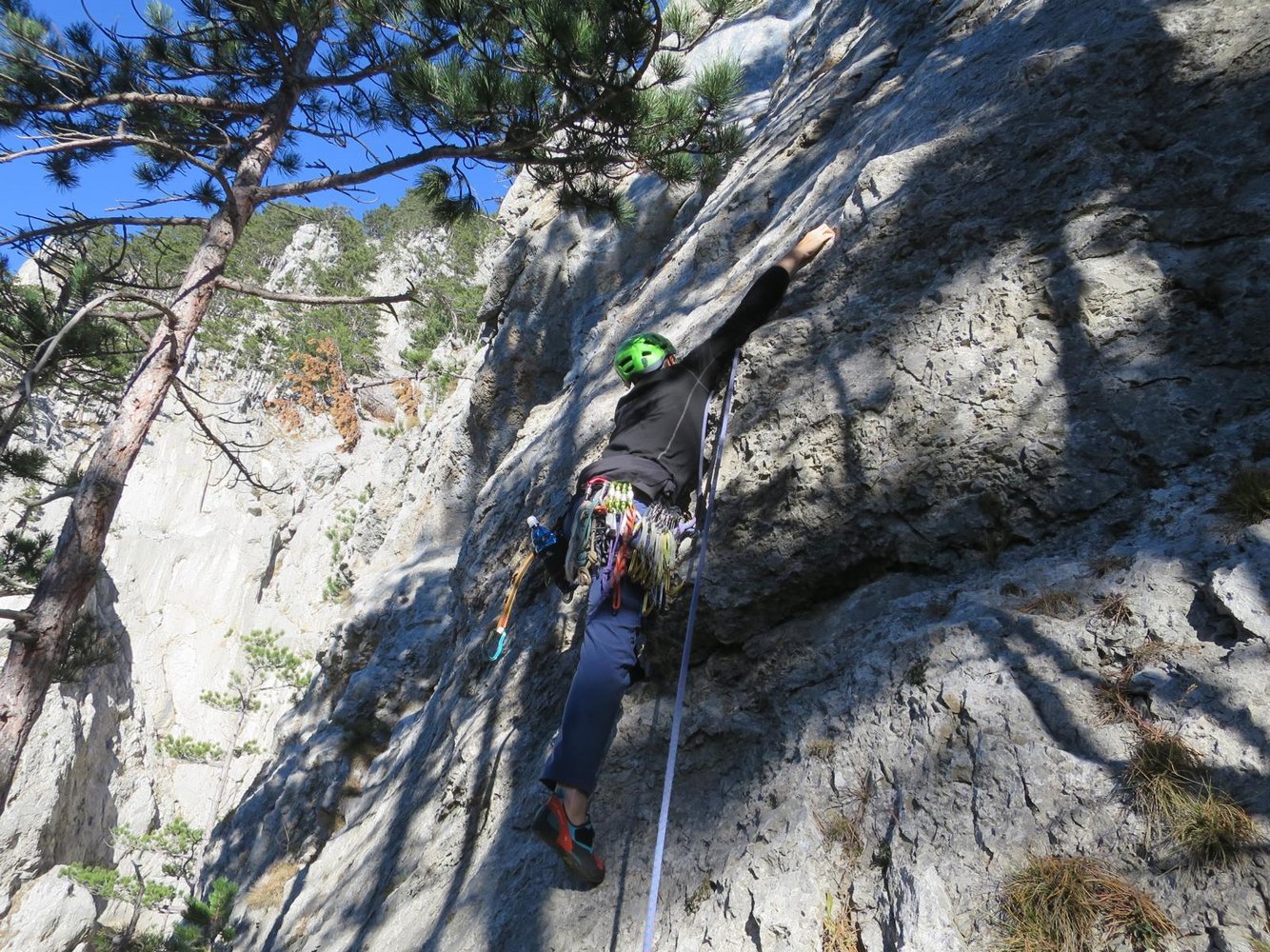 Eine der besten Routen, um die ersten Schritte im alpinen Gelände zu wagen. Vollständig mit Bohrhaken abgesichert, kurze Seillängen. Für Anfänger, die vom Klettergarten kommen ein Hit!