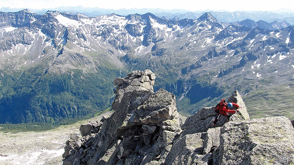 Auf die 3360 Meter hohe Hochalmspitze führt eine der bekanntesten Hochtouren in Kärnten. Neben dem Rudolstädter Weg vorbei an den Steinernen Mandln wird vor allem der Klettersteig auf dem Detmolder Grat frequentiert. Der gigantische Gratanstieg über den Winterleitengrat mit Verlängerung bis auf den Gipfel der Hochalmspitze ist die Königstour an der Südseite. Der Grat ist, je nachdem wie man die einzelnen Passagen meistert, leichter oder schwerer und wird von einheimischen Kletterern auch oft seilfrei bewältigt. Gute Alpinisten, die zügig im leichten Gelände klettern, werden bei dieser Tour ihre Freude haben. Das gewaltige und wilde Bergpanorama entschädigt für den langen Aufstieg!