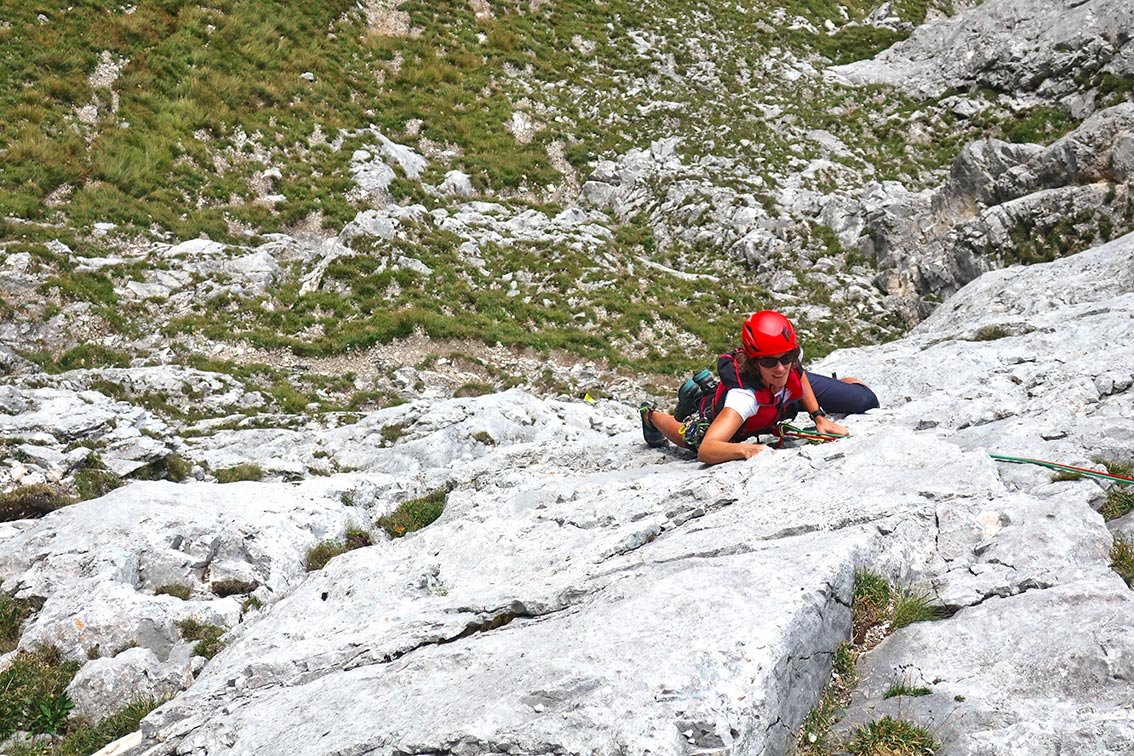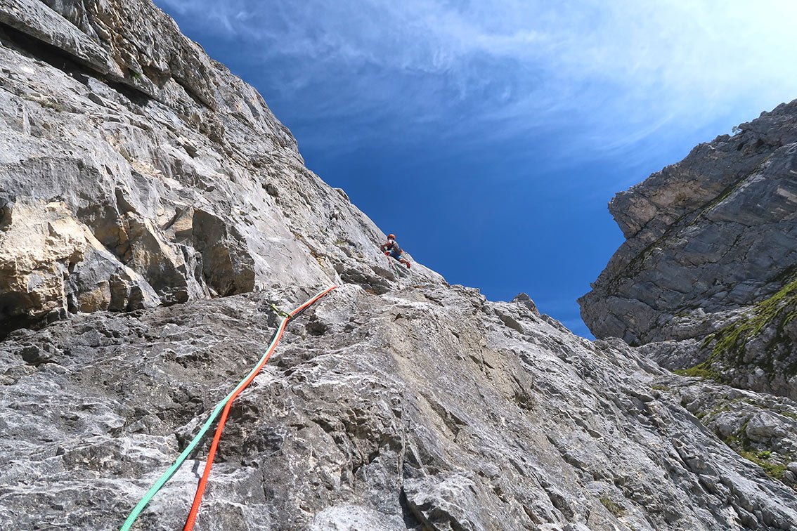 Steile Lochkletterei der Extraklasse! Wirklich oben bist du nie. Dieser Satz, den Reinhard Karl kreierte als er den Gipfel des Mount Everest erreichte, passt perfekt zu dieser Route. Alle Seillängen sind superschöne Lochklettereien an bestem Fels mit sehr guter Bohrhakenabsicherung. Eine der besten Touren beim Gimpelhaus, die man auf jeden Fall einplanen sollte, wenn man in das Tannheimertal fährt.