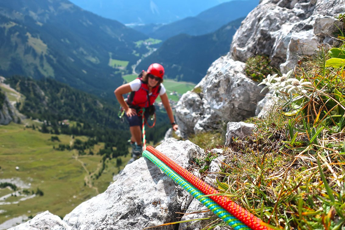 2 x 50 Doppelseil, 12 Expressschlingen und Helm.