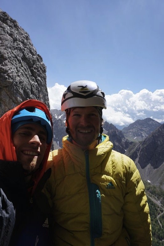 Am Grat angelangt müssen noch ca. 50 Hm im II Grand bis zum Gipfel erklettert werden, bis der Wanderweg zurück zur Karlsbaderhütte führt.