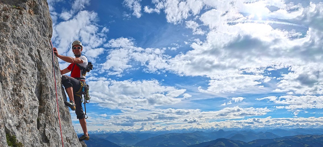 Tolle, teilweise sehr steile und ausgesetzte Route an der Südwand der Vorderen Karlspitze. Die Tour hat fast Plaisir-Charakter, in der vorletzten Seillänge, die durch die Rinne führt, braucht man allerdings einen Vorsteiger mit alpiner Erfahrung. Man klettert oft an steilen Platten und Pfeilern. Das Grande Finale ist eine tolle, griffige, sehr steile und anspruchsvolle Plattenwand mit kleiner Rissspur - erst danach kann man, trotz der sehr beanspruchten Unterarme, den schönen Ausblick in die Kitzbüheler Alpen genießen.