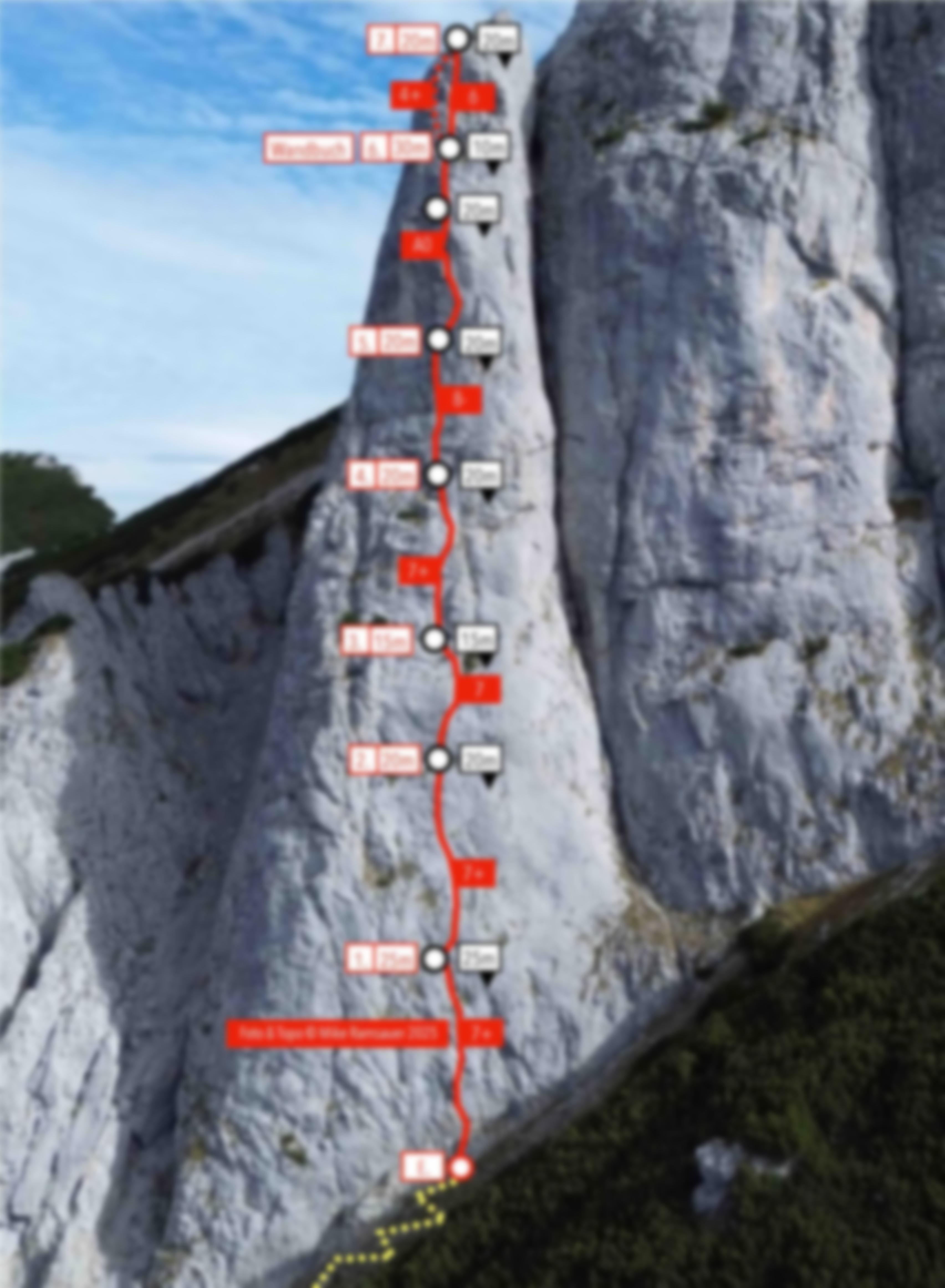 Eingerichtet im Lead-Rope-Solo (6. SL. im Top-Rope-Solo) im Sommer und Herbst 2024;