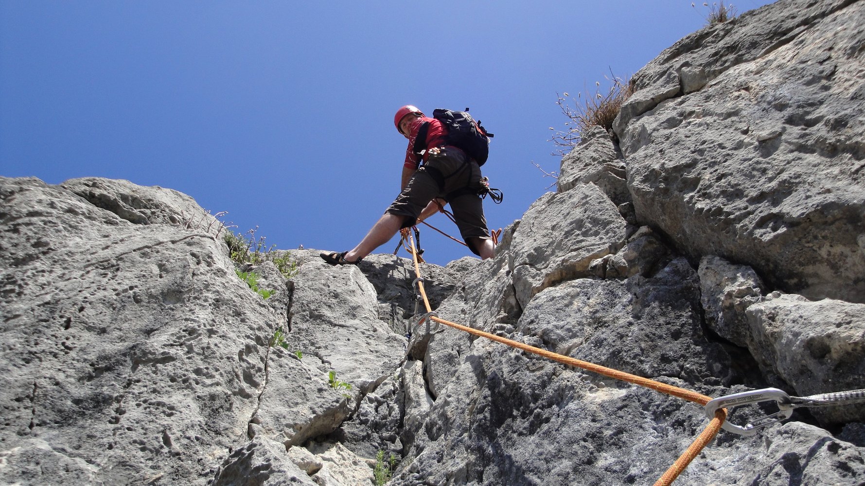 Neue Plaisiertour rechts des beliebten Postlgrats. Die Route hat sehr schöne Kletterstellen, aber auch gestuften und teilweise etwas splittrigen Fels. Alles in Allem aber eine nette Möglichkeit einen angenehmen Klettertag zu verbringen.