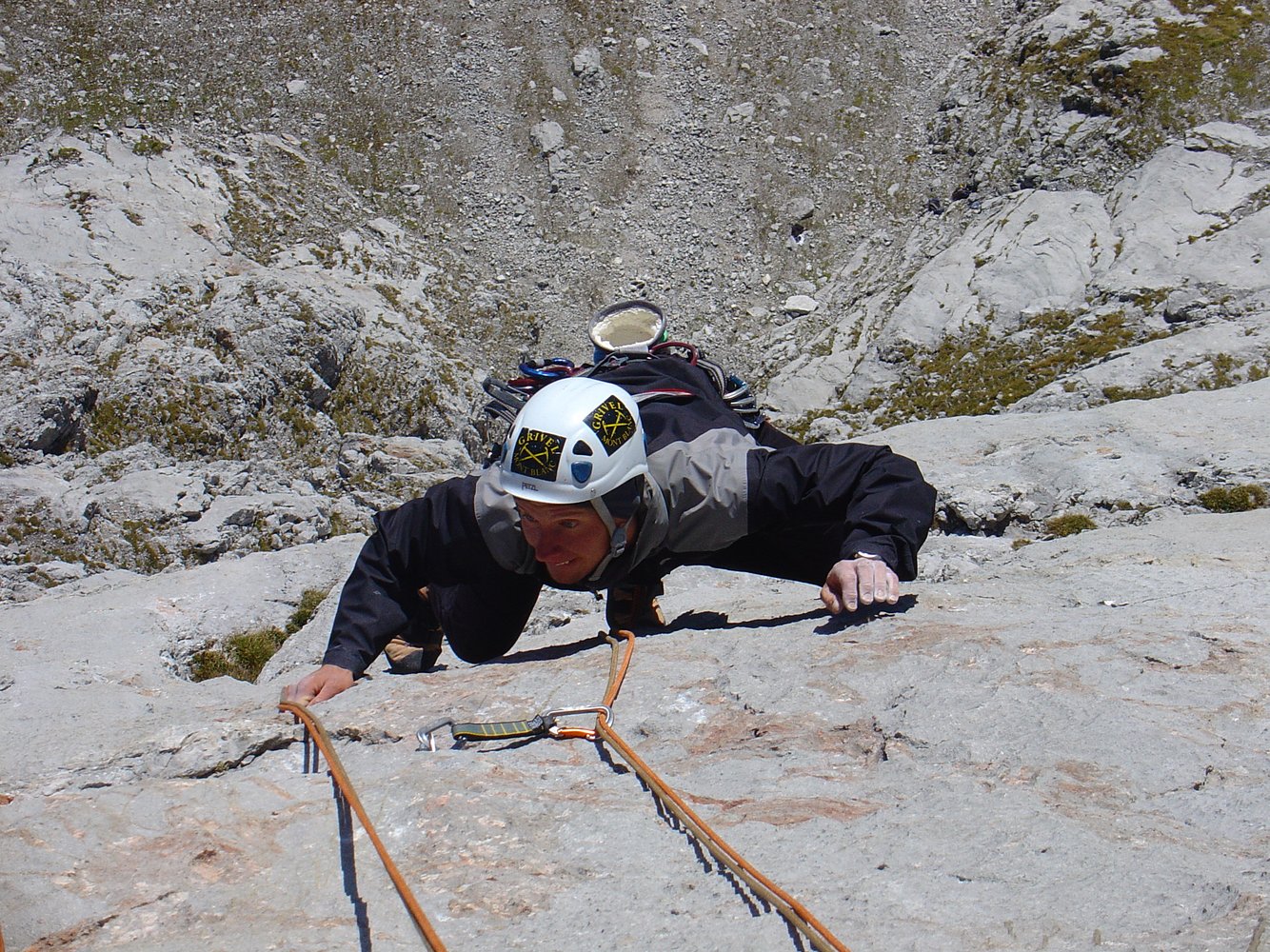 Doppelseil mind. 50 m, 10 Expr. Schlingen, Keile (Micro 3) u. Friends (11/2), Bandschlingen, HELM! nicht vergessen!