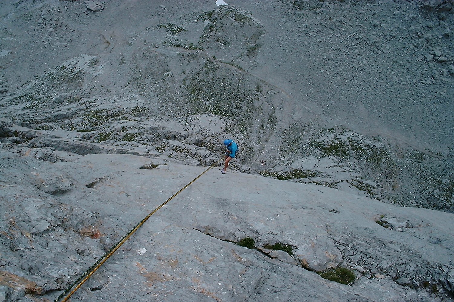 Abseilen über die Route (siehe Topo) oder Abstieg über Normalweg.