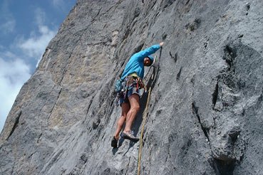 Zeit zum Atmen ist die erste und sicher eine der besten Bohrhakentouren an der Torsäule bzw. im gesamten Hochkönig- Massiv. Die Erstbegeher wollten durch den Einsatz von Bohrhaken einfach Zeit zum Atmen bzw. Klettern ohne Angst schaffen. Die Tour ist aber keinesfalls übersichert. Die Hakenabstände sind teilweise sehr weit und erfordern das sichere Beherrschen von 7+ im Vorstieg. Die Kletterei ist einfach sensationell schön (siehe Foto) und im besten, traumhaften, steilen Hochkönigskalk. In der letzten SL warten noch ein paar sehr weite Runouts im 7ten Grad!!!