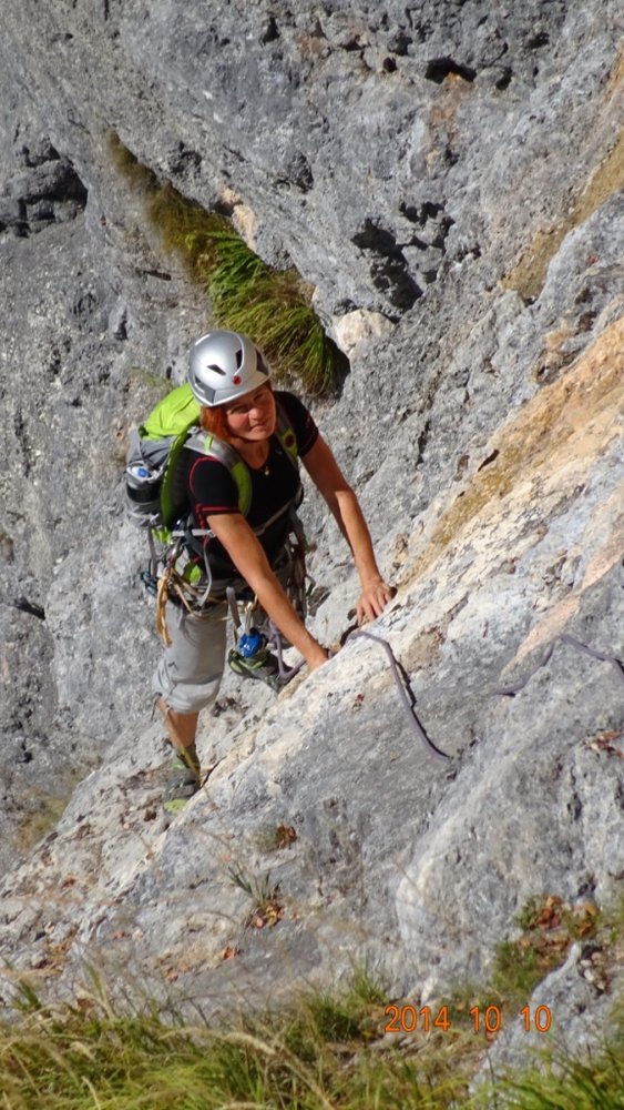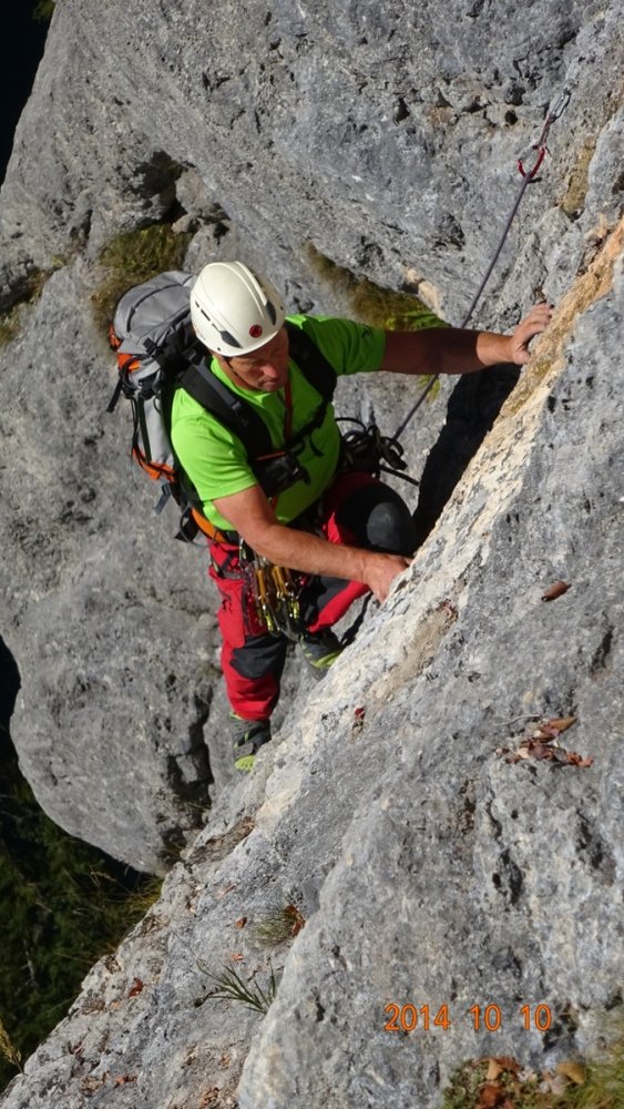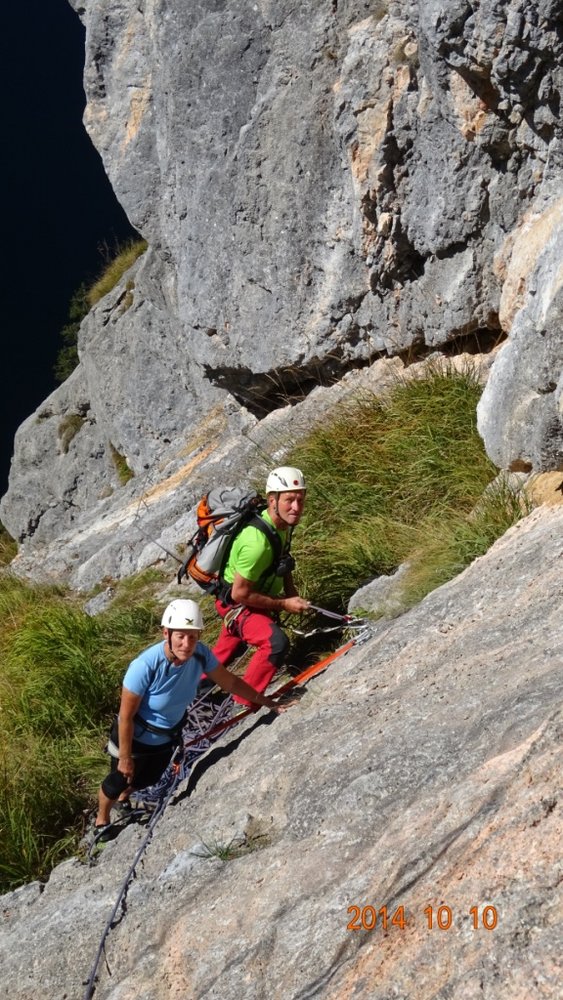 Die Tour ist 4 – 5, eine Stelle eine einfache A0 Stelle, die vorletzte Seillänge ist jedoch durchgehend 5. Die Tour ist für 5er Kletterer geeignet. Die Variante „Elisabeth Ausstieg“ ist deutlich schwerer, 5 + A0.