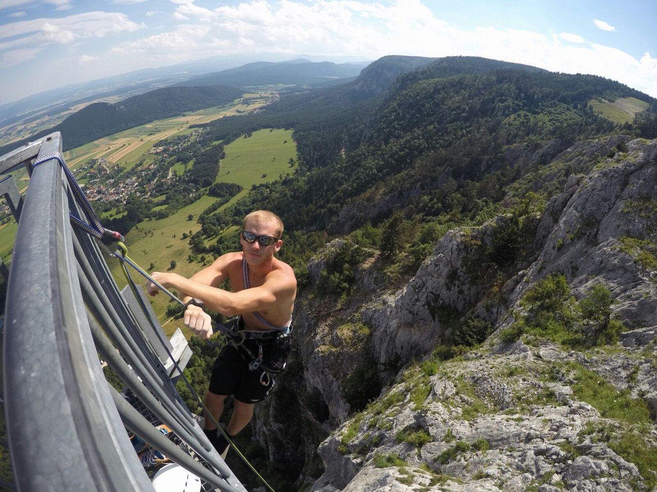 Vorsicht auf herabfallende Gegenstände von den Besuchern des Skywalks!