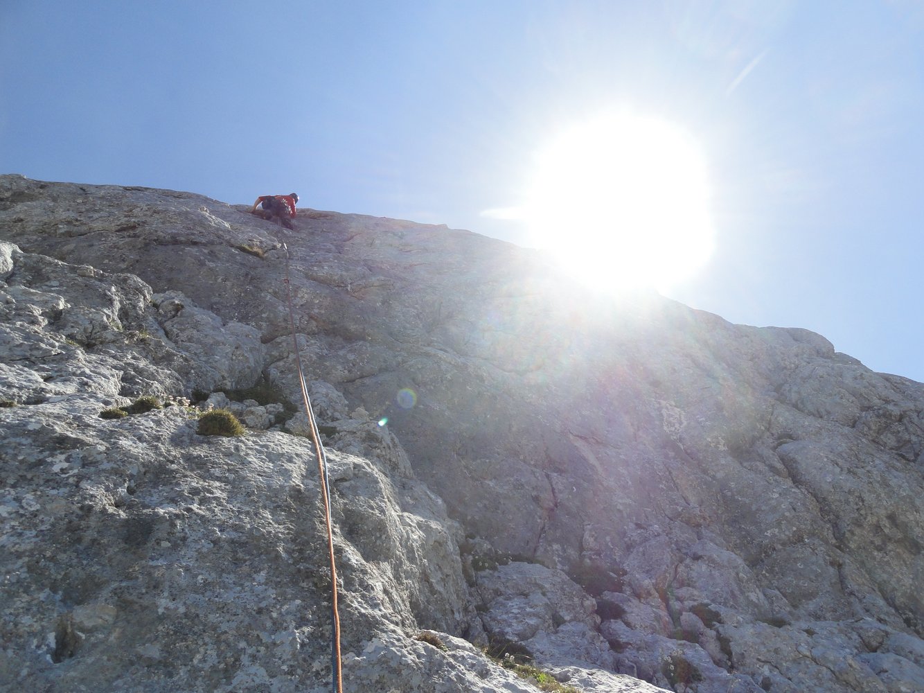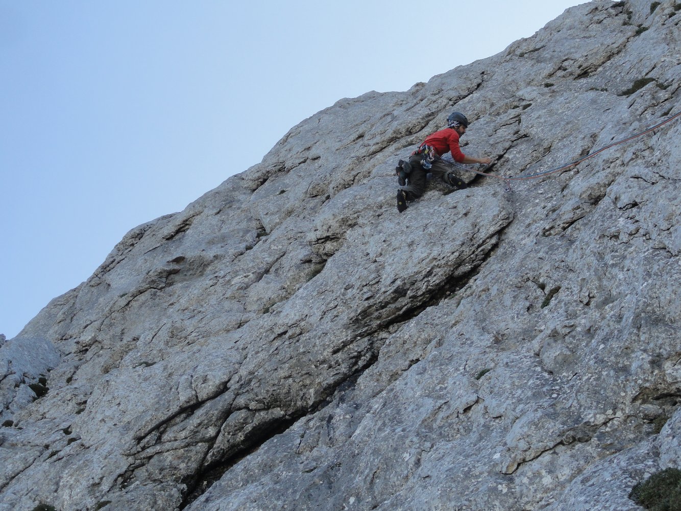 Schöne Route mit etwas alpinem Charakter auf einen eher unbekannten und somit einsamen Gesäuse Gipfel. Die Route ist mit Bohrhaken abgesichert, verlangt aber trotzdem vom Begeher den sicheren Umgang mit Friends. Teilweise größere Hakenabstände verlangen auch die solide Beherrschung des 5. Schwierigkeitsgrades. Friends lassen sich aber leicht legen und an den schwierigen Stellen stecken immer Bohrhaken. Stände sind gebohrt und komfortabel. Die Felsqualität ist großteils gut bis sehr gut, in den leichteren Metern muss man etwas Vorsicht walten lassen. Die Schwierigkeiten bewegen sich großteils im 5. Grad, schwierige Stellen sind nur kurz und gut gesichert.