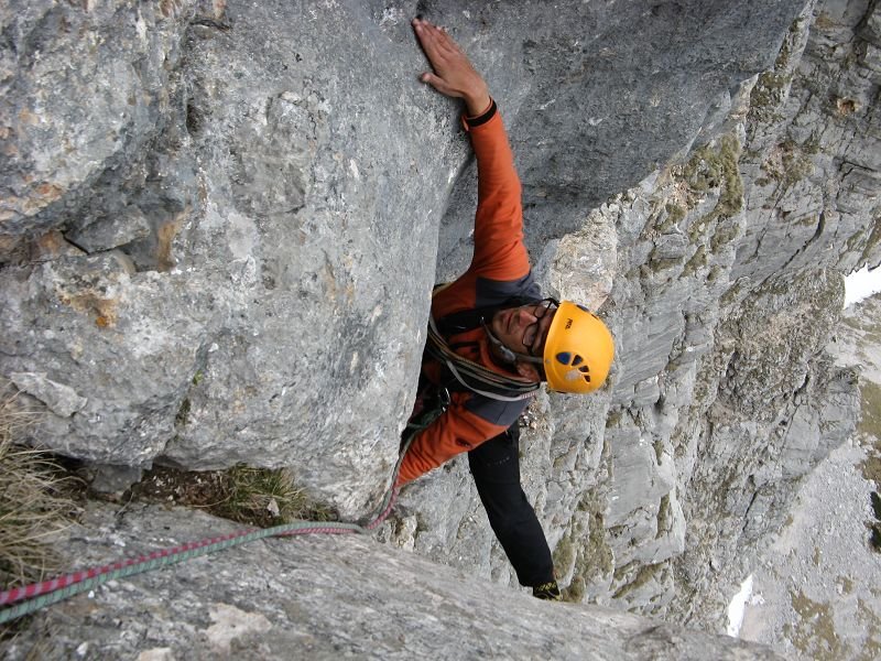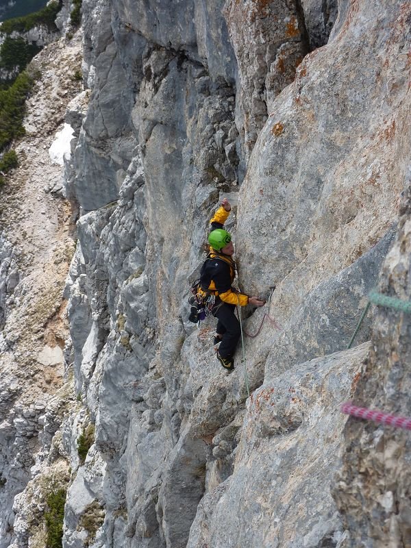 Achja: Die Seillängen 4 und 5 verlaufen auf unserem Topo auf der benachbarten Spominska Smer Ceneta Kramarja. Macht keinen rgoßen Unterschied, wird aber trotzdem sobald als möglich ausgetauscht.