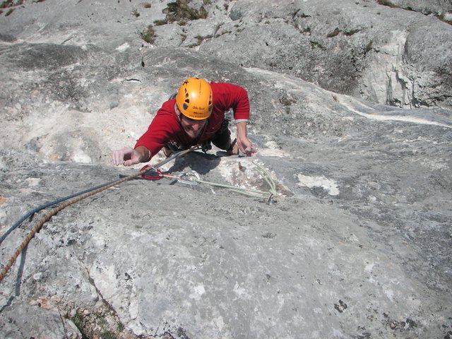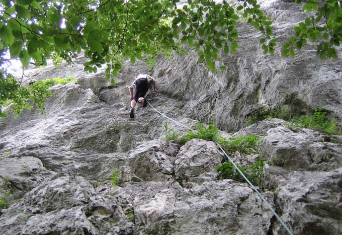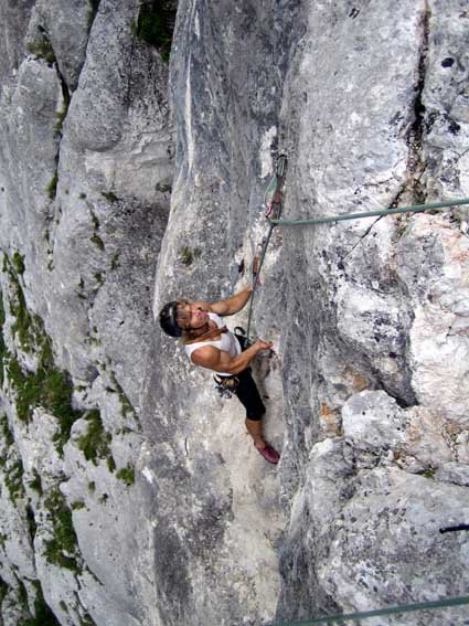 Neue, sehr schöne und steile Tour rechts von der Oiden Wurzn. Die Schwierigkeiten warten in den ersten beiden Seillängen, danach wird es etwas leichter. Die Tour ist wirklich perfekt abgesichert und hat zwei geklebte Griffe. In Lob den Erstbegehern!