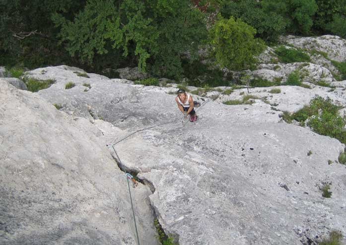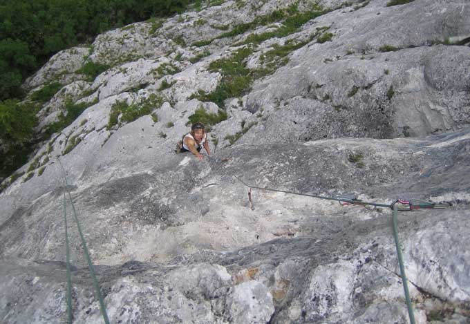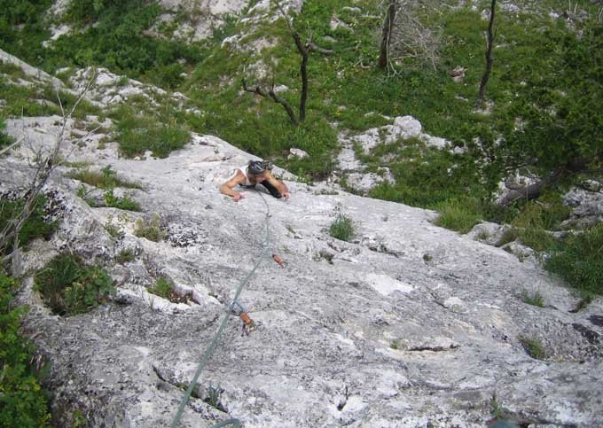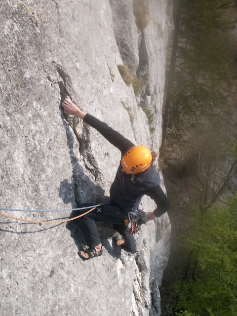 Die Route ist sehr gut mit Bohrhaken gesichert.