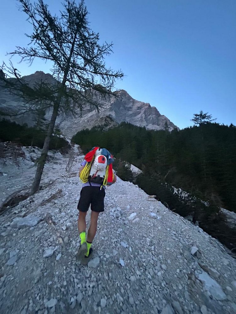 Der Großteil der Route ist im 4. und 5. Schwierigkeitsgrad, den man aber zügig und sicher klettern sollte. Es ist sehr viel Bruch in der Route, also man muss wirklich von unten bis oben bei der Sache sein und nicht jedem Griff und Tritt blind vertrauen.