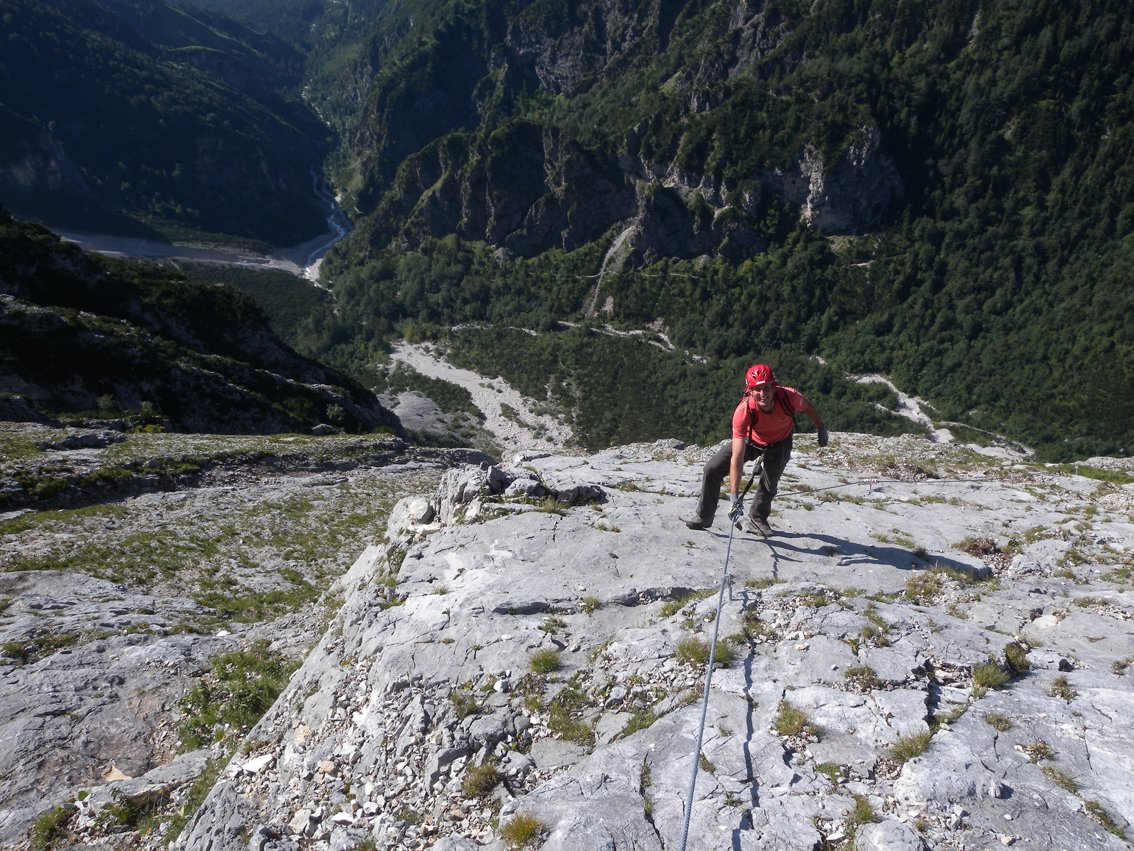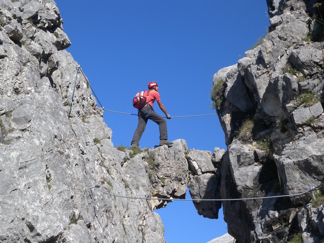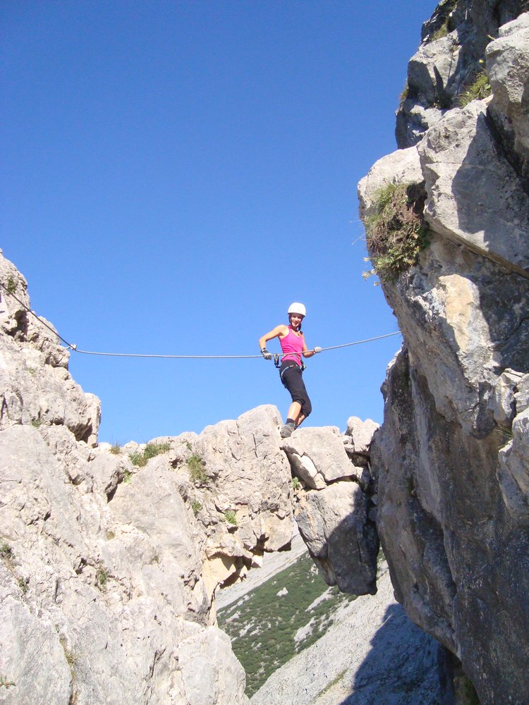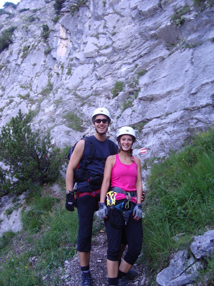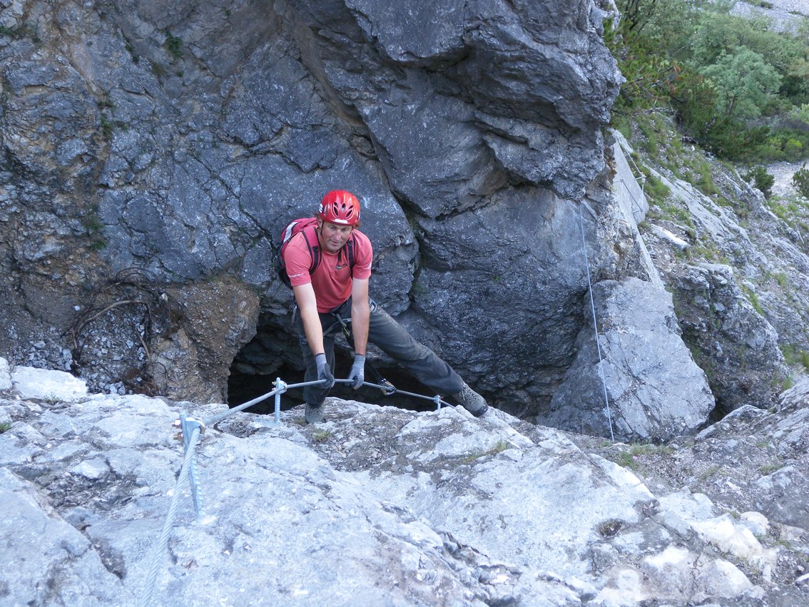 Komplette Klettersteigausrüstung und vor allem Helm!