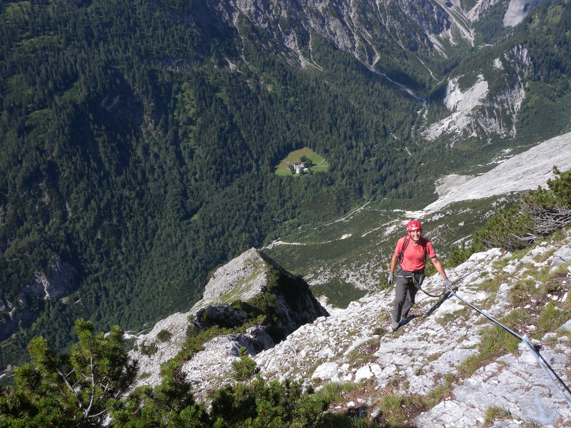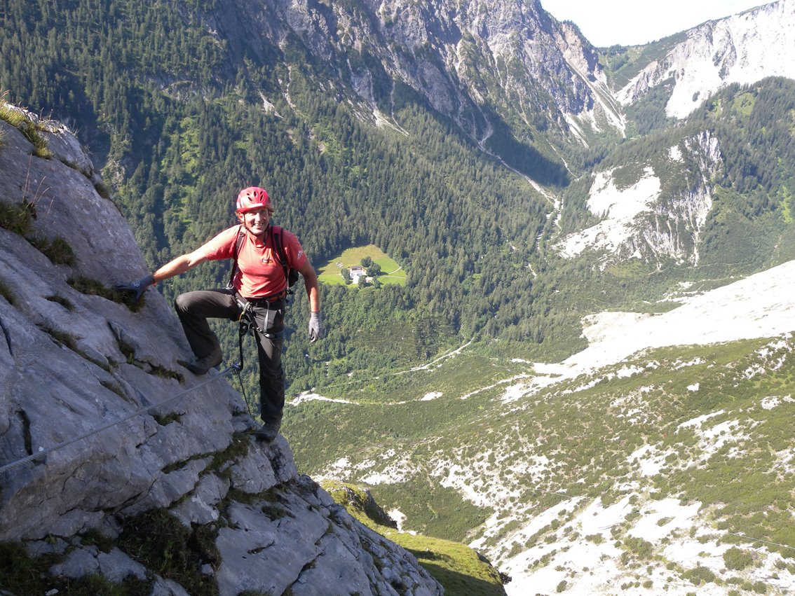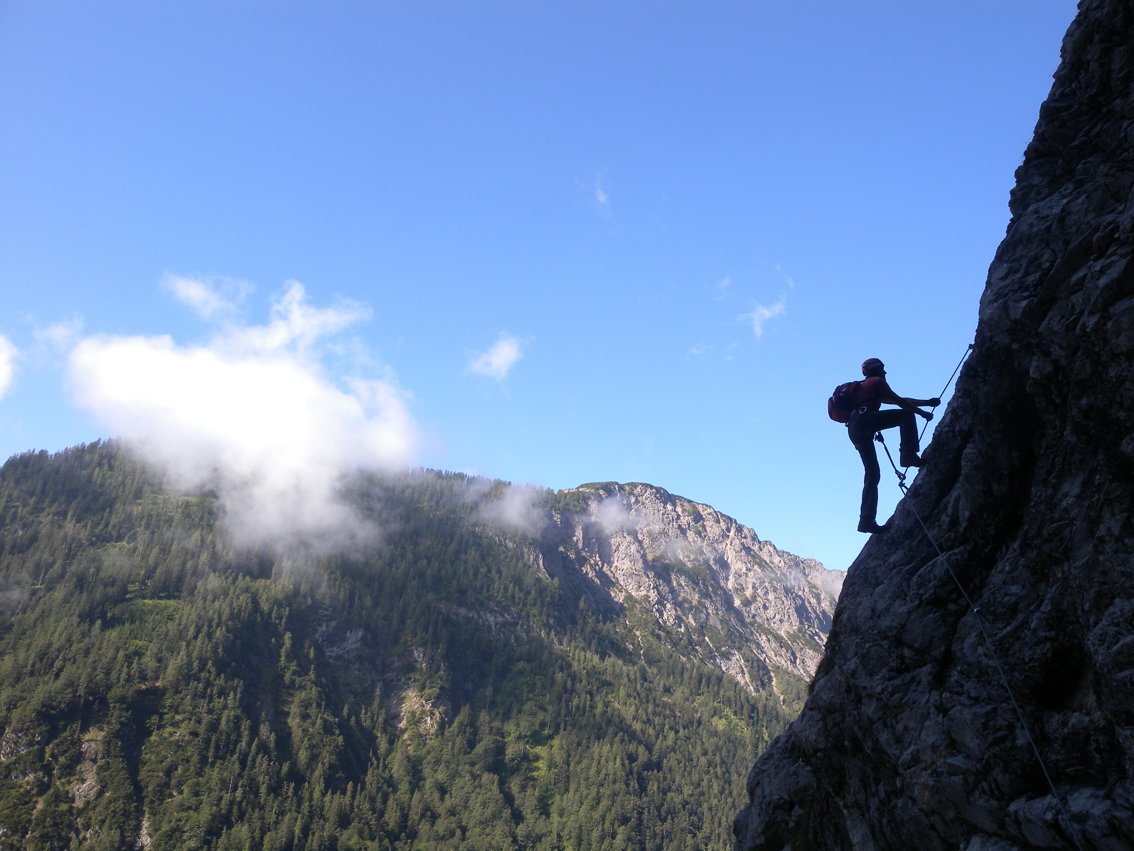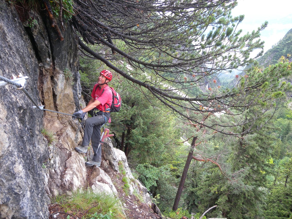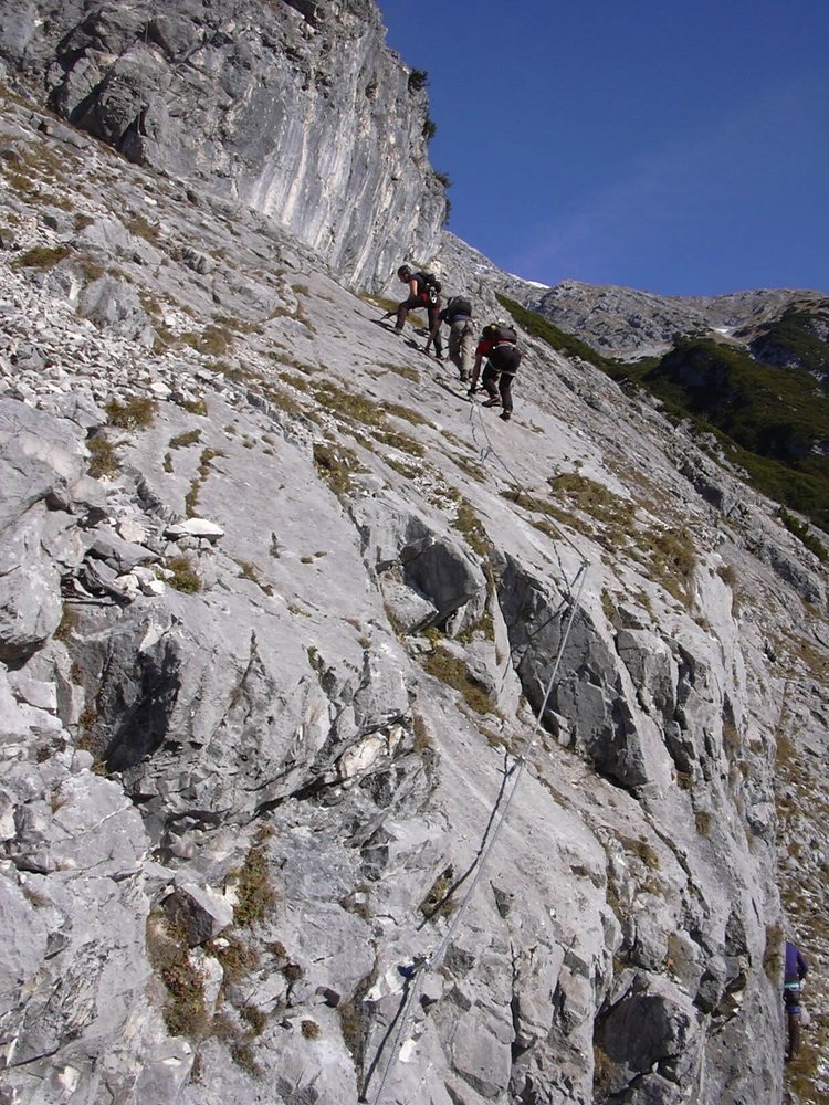 Langer Klettersteig 600 Hm, fast 1000 mal Umhängen, den man nicht unterschätzen sollte. Vom Steigende sind es noch ca. 1 Std. Aufstieg bis zur Bettelwurfhütte, gesamt also 1000 Hm. Wegen der südseitigen Lage sollte genug zu trinken mitgenommen werden! Der Steig ist nur in der Zeit von 1. Mai bis 1. Nov. begehbar.