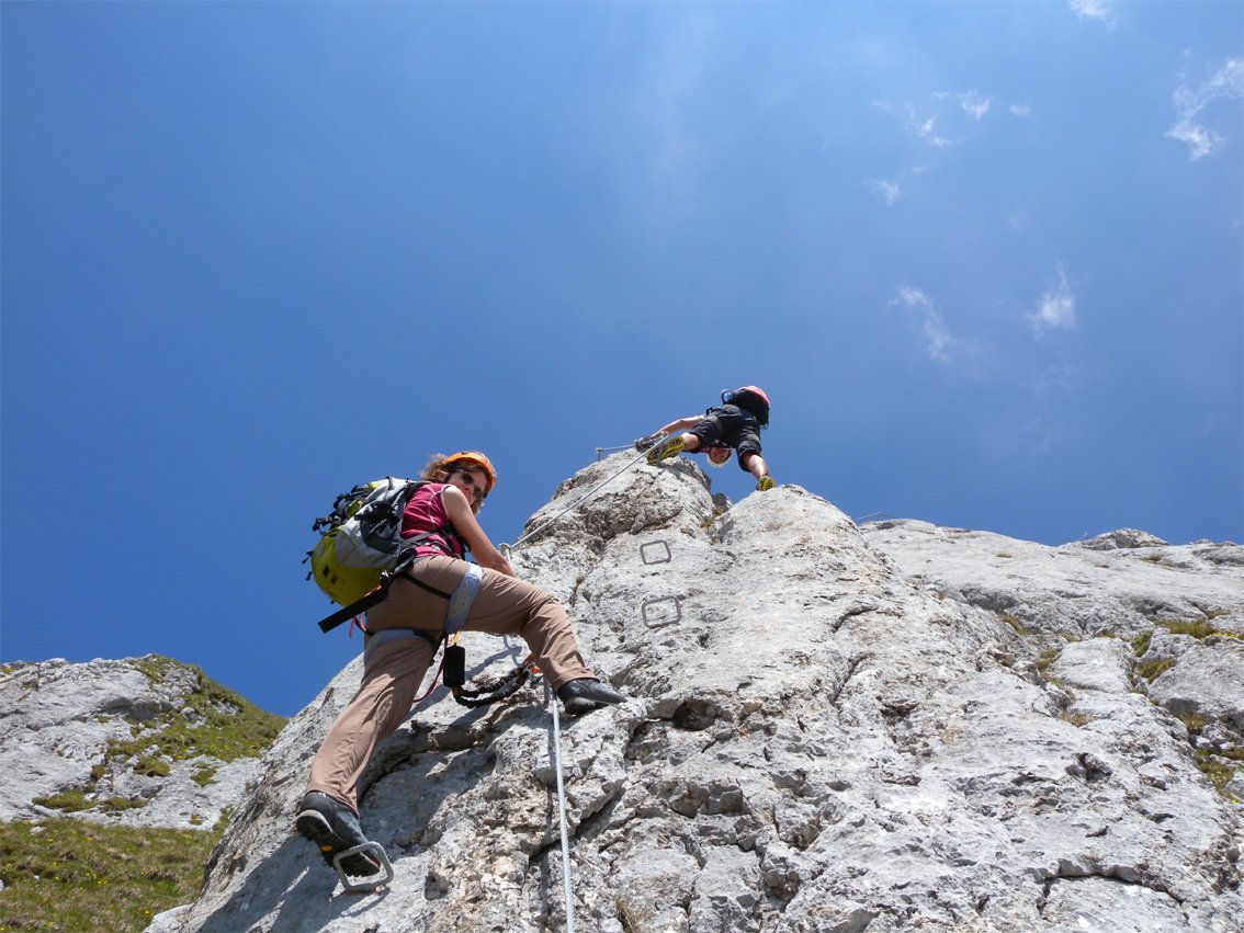 Jeder Steig kann umgangen werden bzw. erreicht man die Gipfel auch auf leichten Steigen oder Wegen. Die Ferratas können frei kombiniert werden.