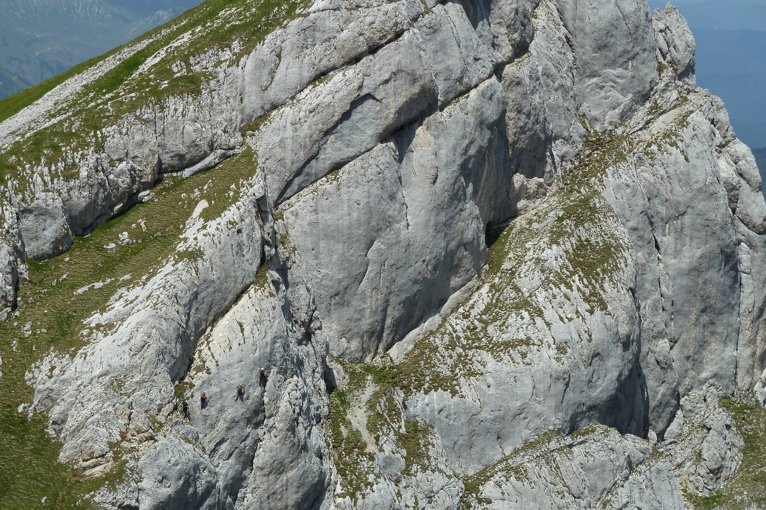 Einstieg Haidachstellwand: Von der Bergstation in Richtung Mauritzalm. Vor der Alm aber rechts auf dem markierten Wanderweg in Richtung Haidachstellwand, bis man eine sperrende Felsstufe erreicht. Der Klettersteig führt links über Platten (der Wanderweg ist auch kurz gesichert und führt gerade über eine kurze Felsstufe hinauf).