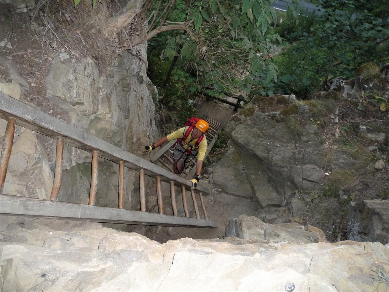 Helm, Klettersteigset nur für Varner-Leitern nötig.