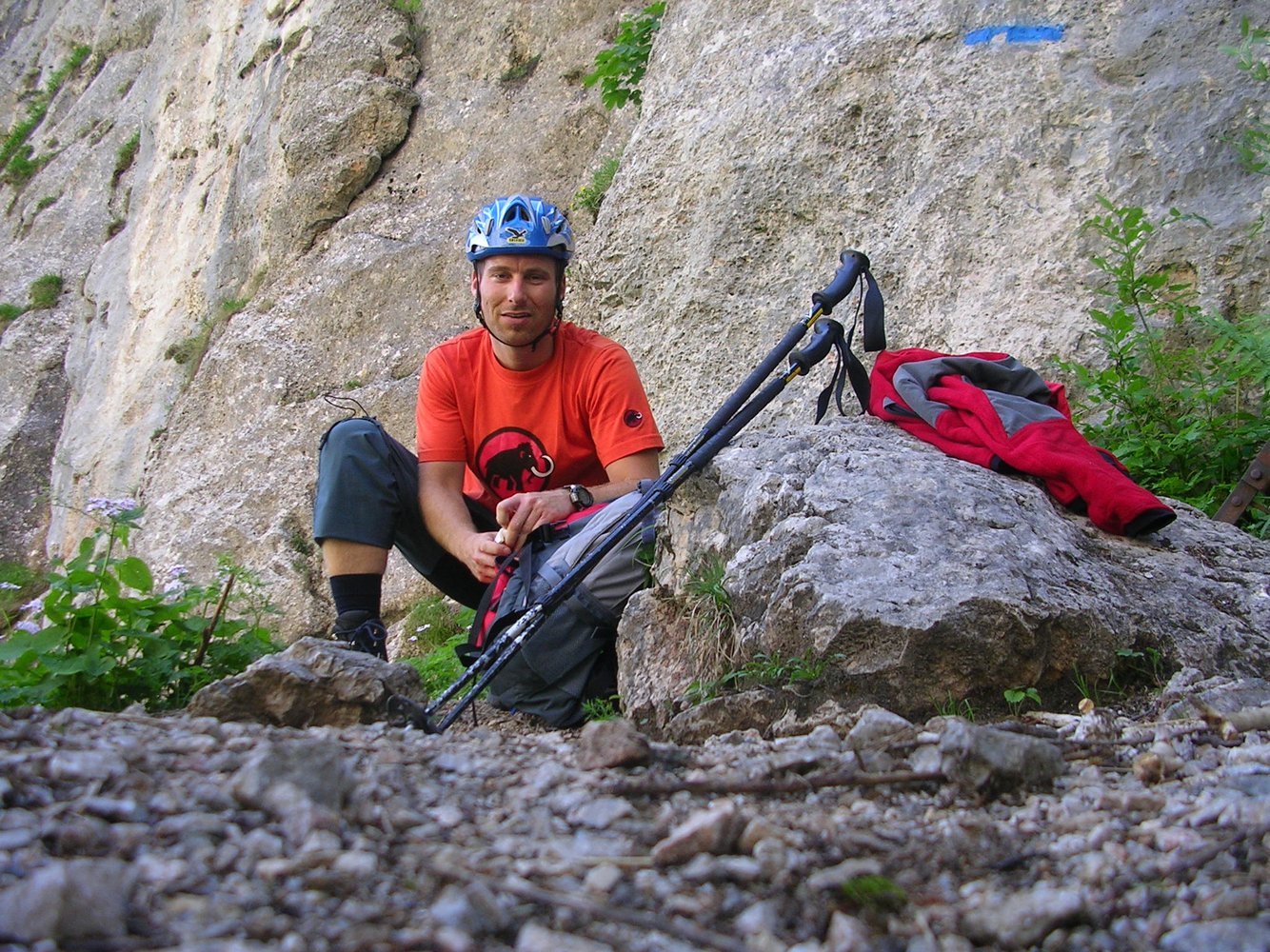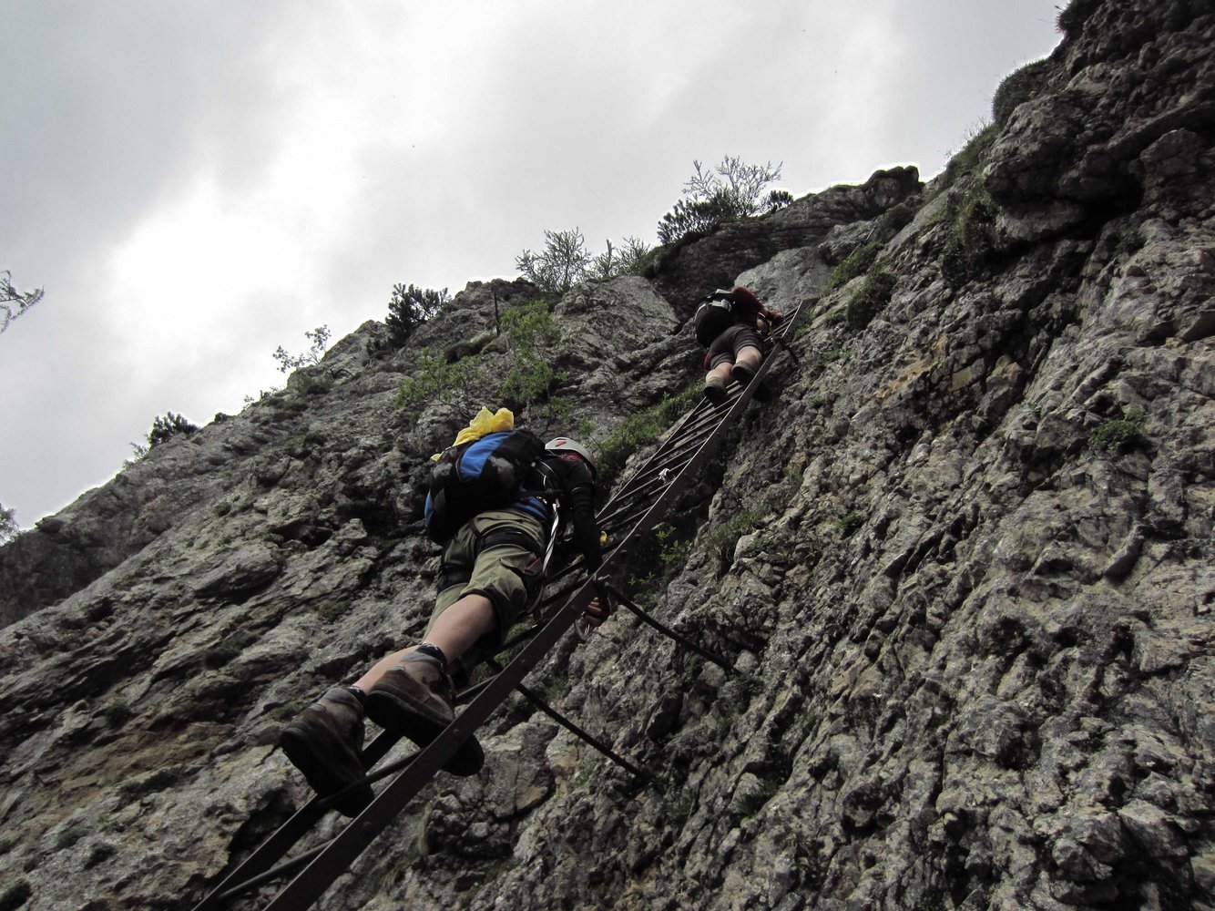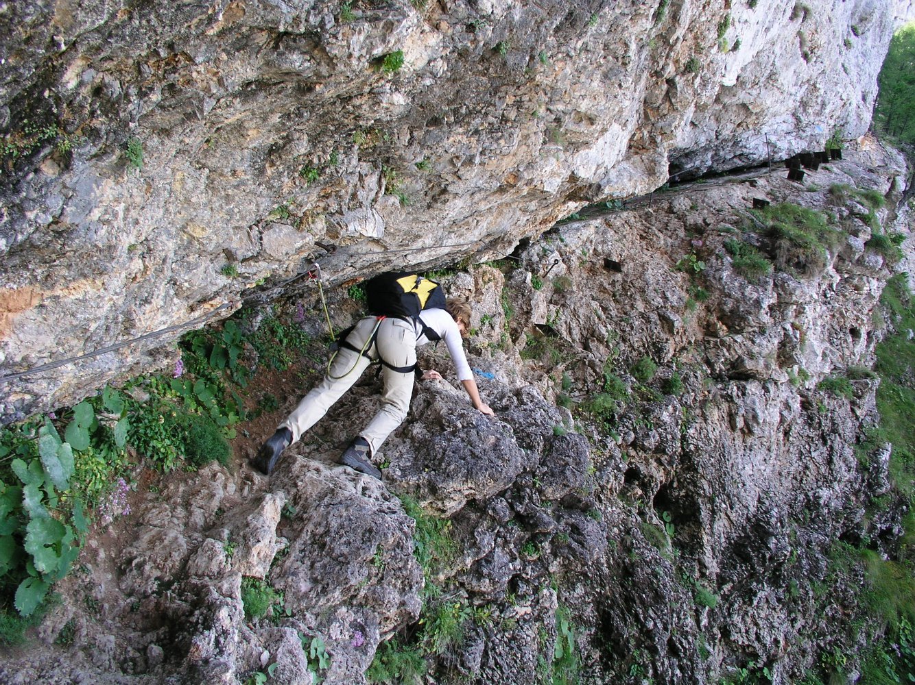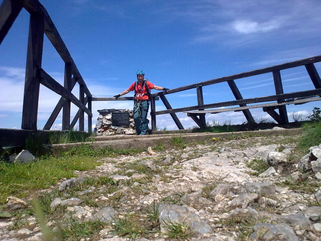 1. Im Frühjahr liegt in den Rinnen dieses nordwestseitigen Steiges oft noch sehr lange Schnee, von dem auch die Sicherungsseile bedeckt werden. Dieser Umstand führte zu vielen Bergrettungseinsätzen.