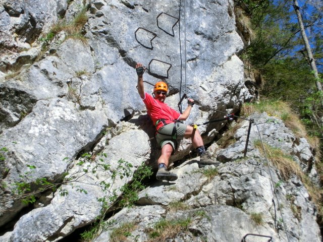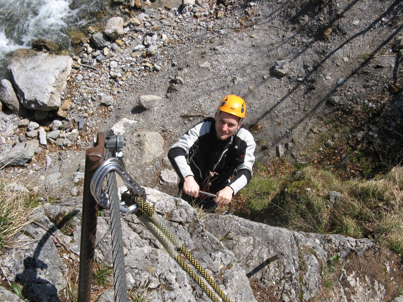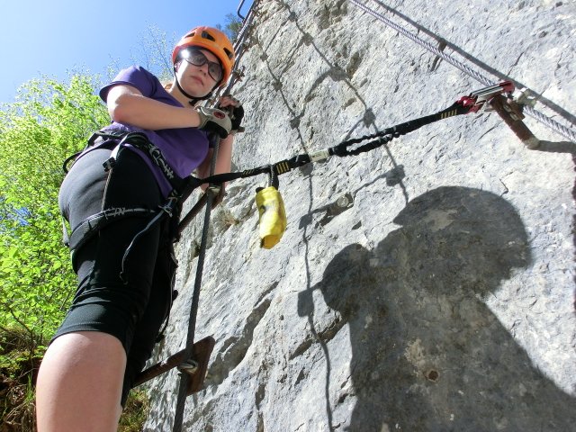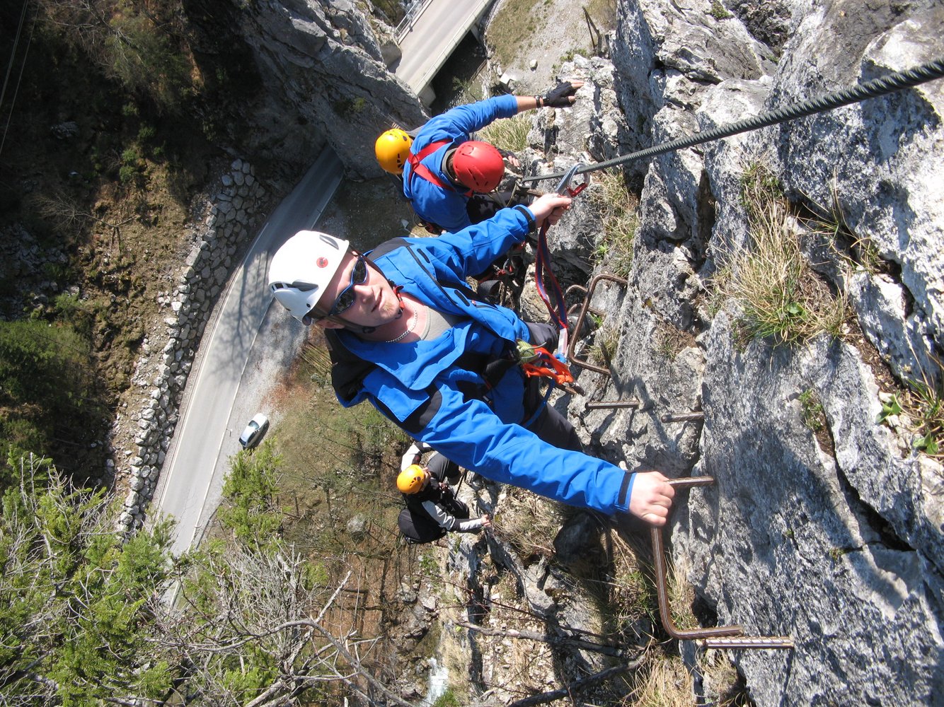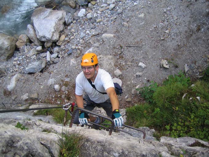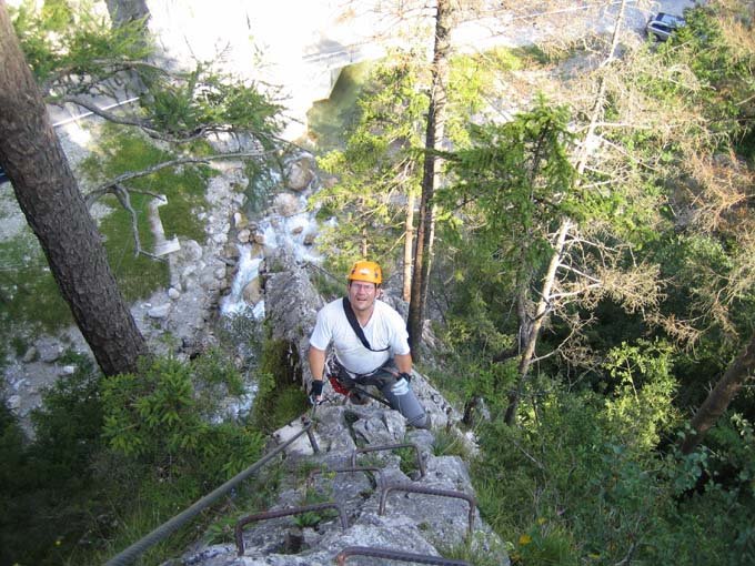 „Da legt’s di nida…“ ist der erste Gedanke, der einem beim Anblick der extrem überhängenden Seilleiter in den Kopf schießt. Doch nach einigen beherzten Zügen hat man eine der schwersten Klettersteigstellen Österreichs überwunden. Den Erbauern ist es gelungen, einen eindrucksvollen Abenteuerpark mitten im Nationalpark Gesäuse zu schaffen. Drei unterschiedlich schwere „Klettersteige“ führen unmittelbar neben der Straße nach oben. Dank des kurzen Zu- und Abstieges eine schöne Bereicherung für das Tal.