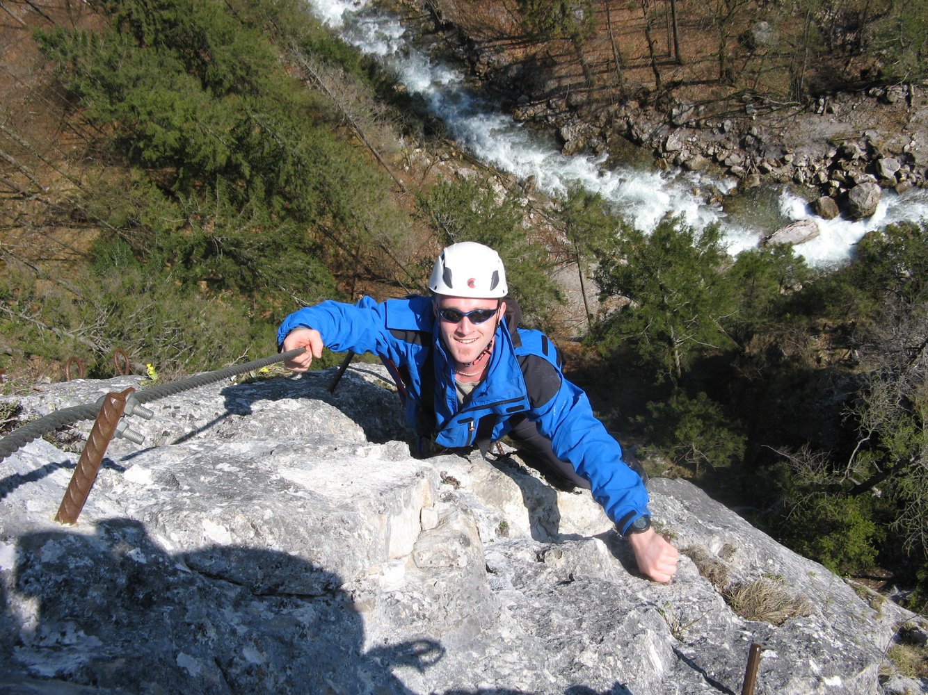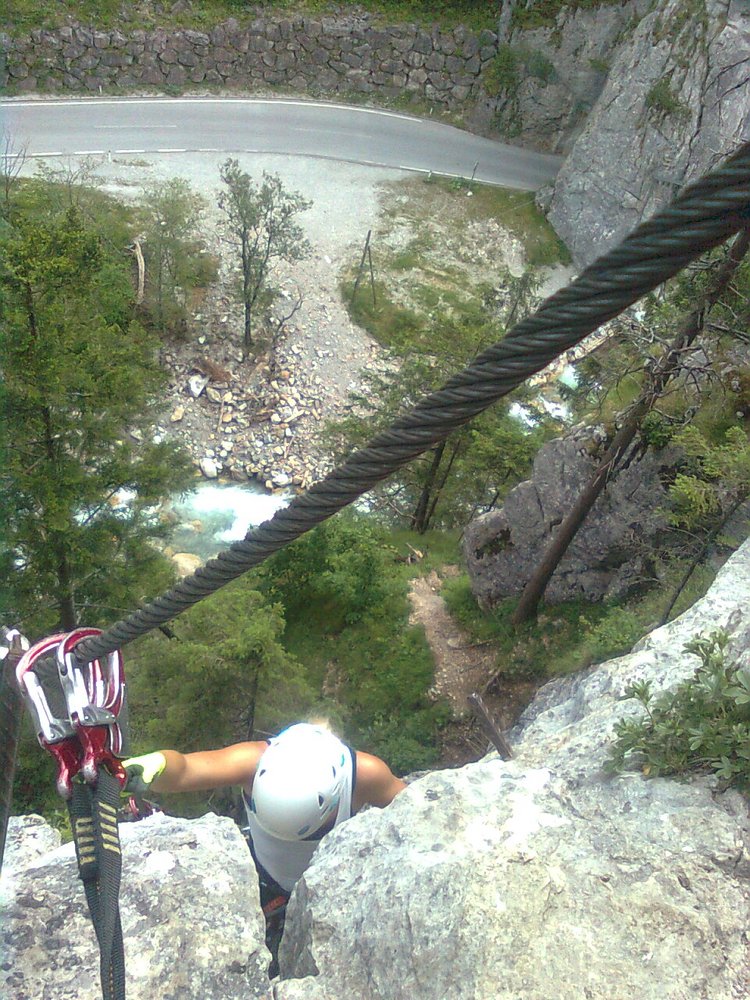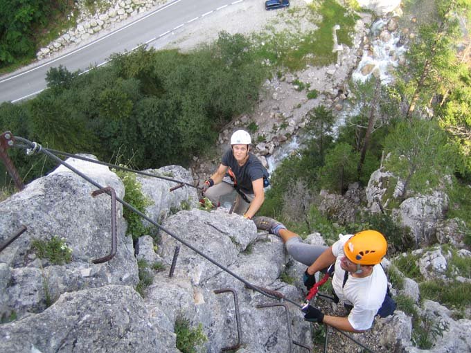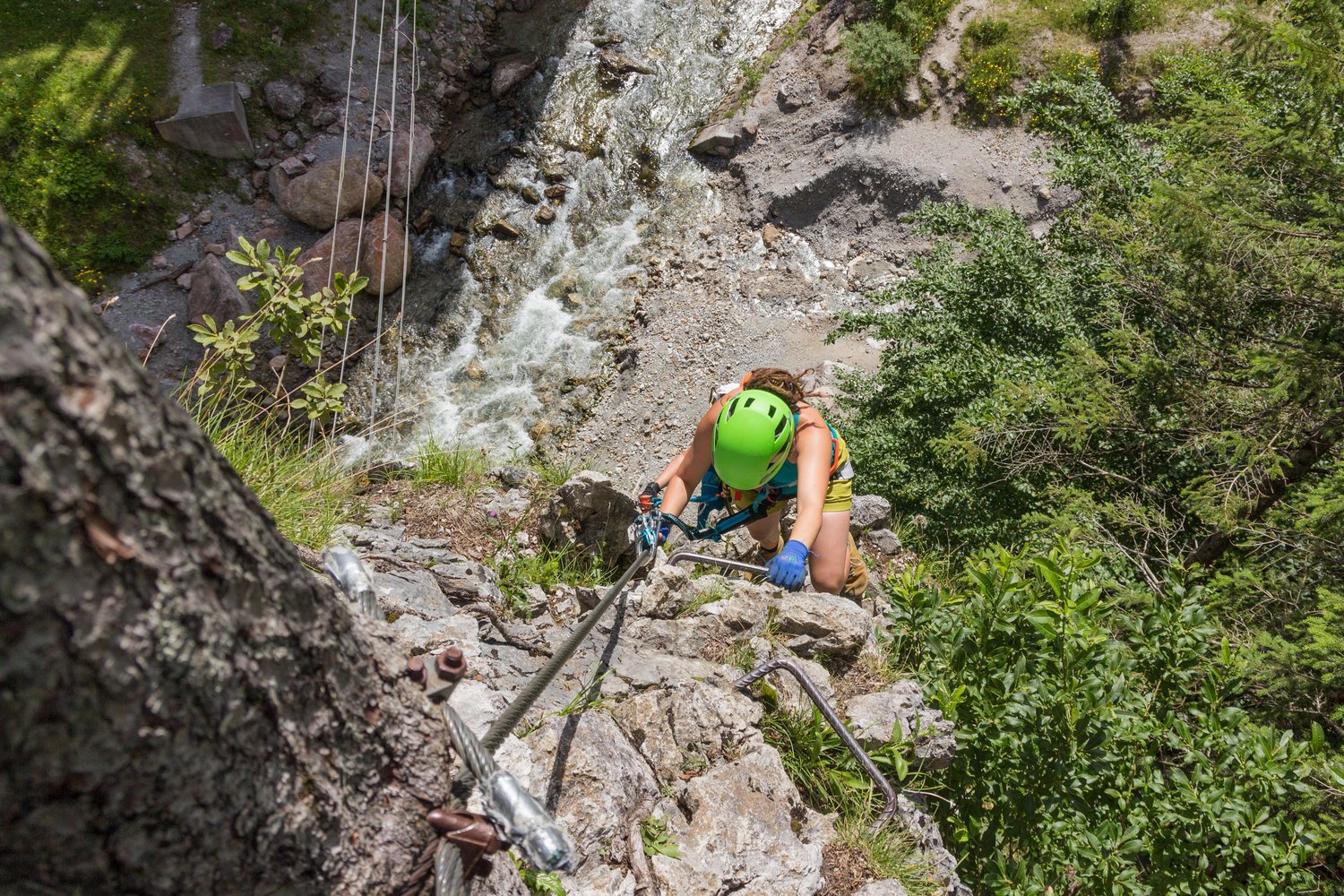 „Da legt’s di nida…“ ist der erste Gedanke, der einem beim Anblick der extrem überhängenden Seilleiter in den Kopf schießt. Doch nach einigen beherzten Zügen hat man eine der schwersten Klettersteigstellen Österreichs überwunden. Den Erbauern ist es gelungen, einen eindrucksvollen Abenteuerpark mitten im Nationalpark Gesäuse zu schaffen. Drei unterschiedlich schwere „Klettersteige“ führen unmittelbar neben der Straße nach oben. Dank des kurzen Zu- und Abstieges eine schöne Bereicherung für das Tal.