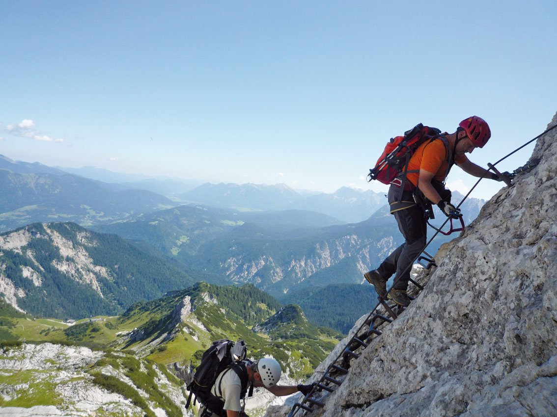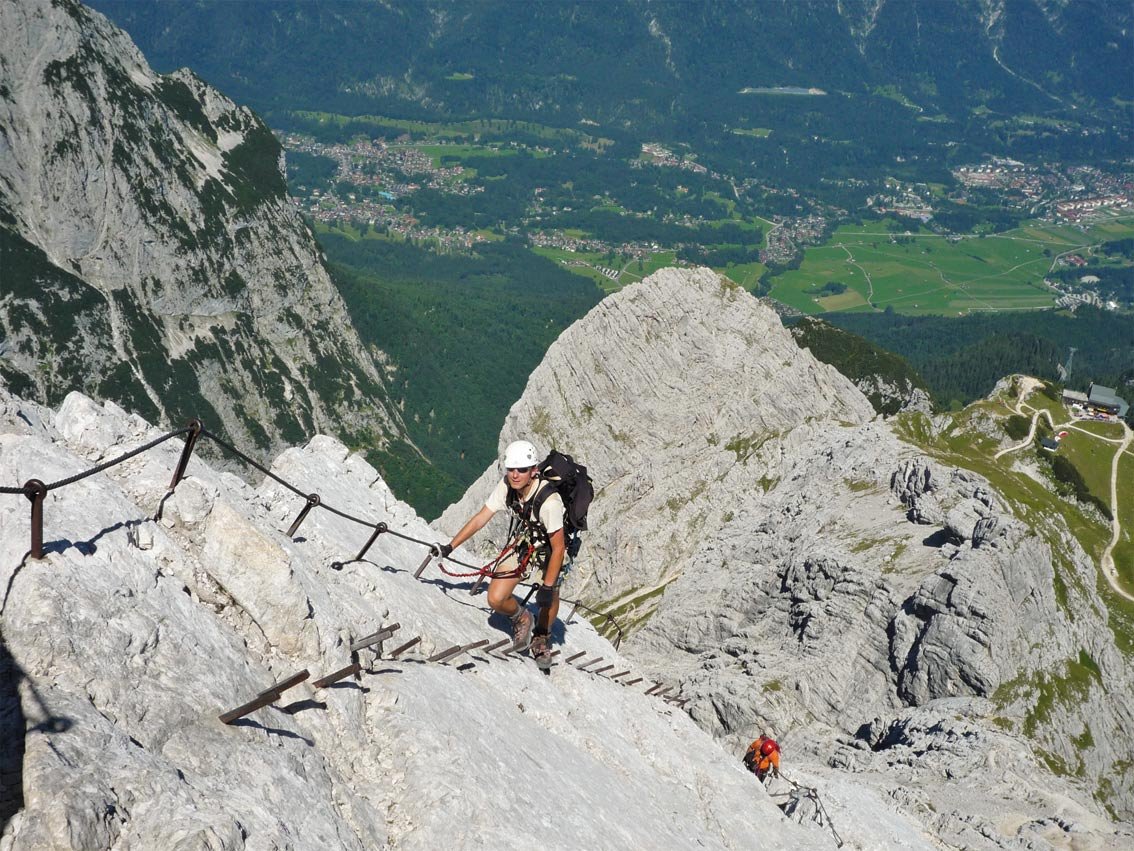 Der Klassiker unter den Klettersteigen in Bayern - eine leichte, aber doch recht zünftige Bergtour, die nicht unterschätzt werden sollte. Dies liegt vor allem an den wenigen Gehpassagen, die es jedoch in sich haben. Bei dieser landschaftlich einmalig gelegenen Tour hat man einen fantastischen Ausblick auf das alpine Umland sowie natürlich auch auf Garmisch-Partenkirchen. Wenn man den Osterfelderkopf als Ausgangspunkt wählt, ist diese Unternehmung auch als Tagestour gut machbar. Wahre Klettersteiggenießer kombinieren die Alpspitz-Ferrata mit dem Ostgrat und dem Nordwandsteig - so ergibt sich eine sehr schöne, lange und vor allem nicht allzu schwere Klettersteigrunde.