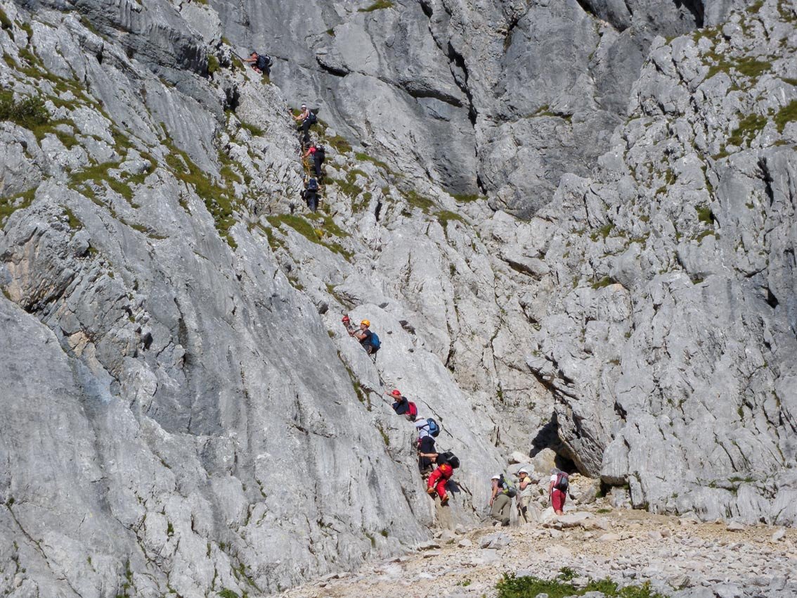 Sehr gut versichert. Trittsicherheit aber erforderlich. In der Gipfelrinne ist unbedingt auf Steinschlag zu achten!
