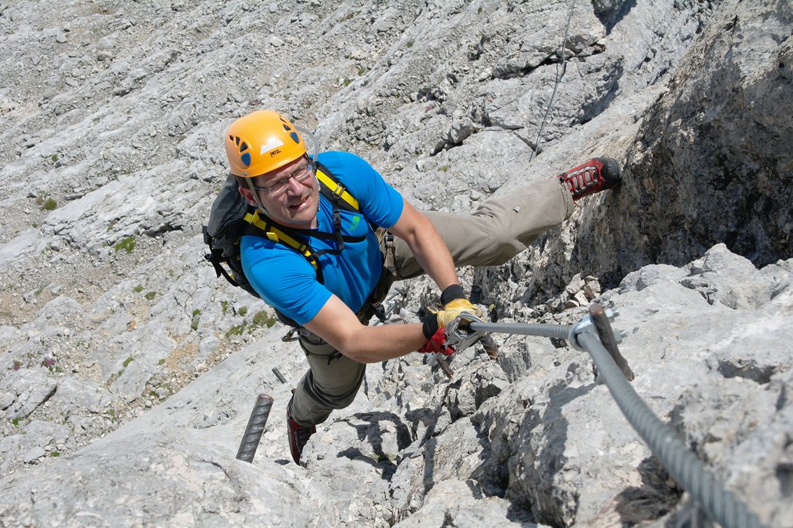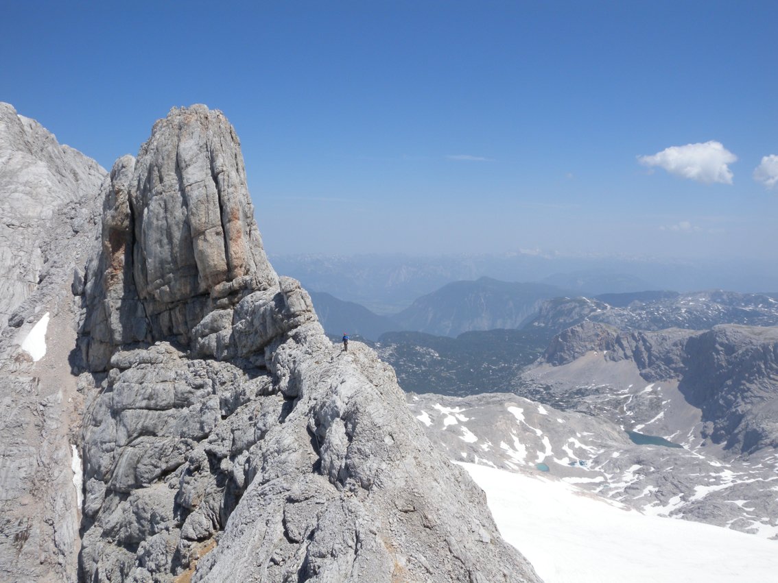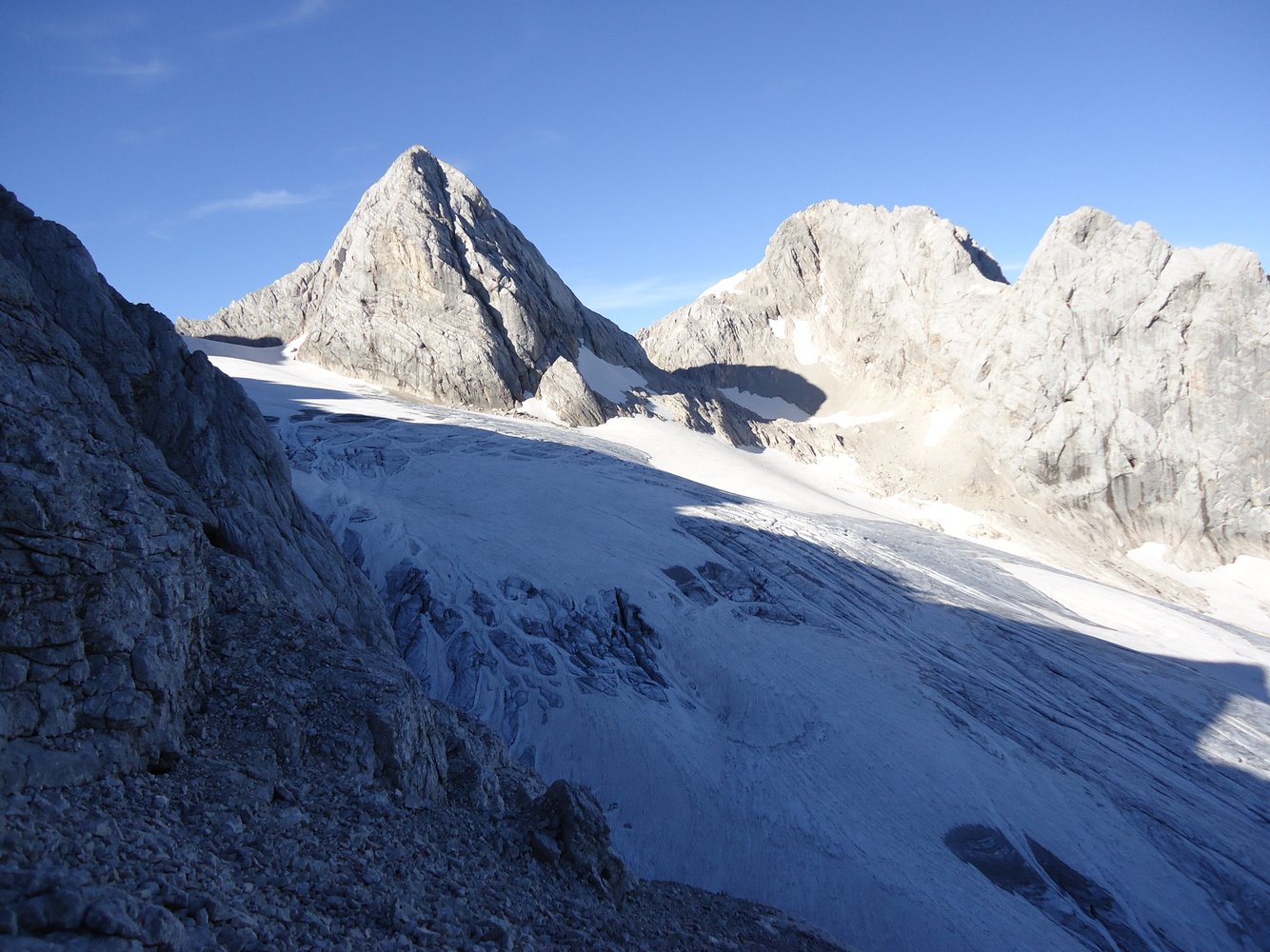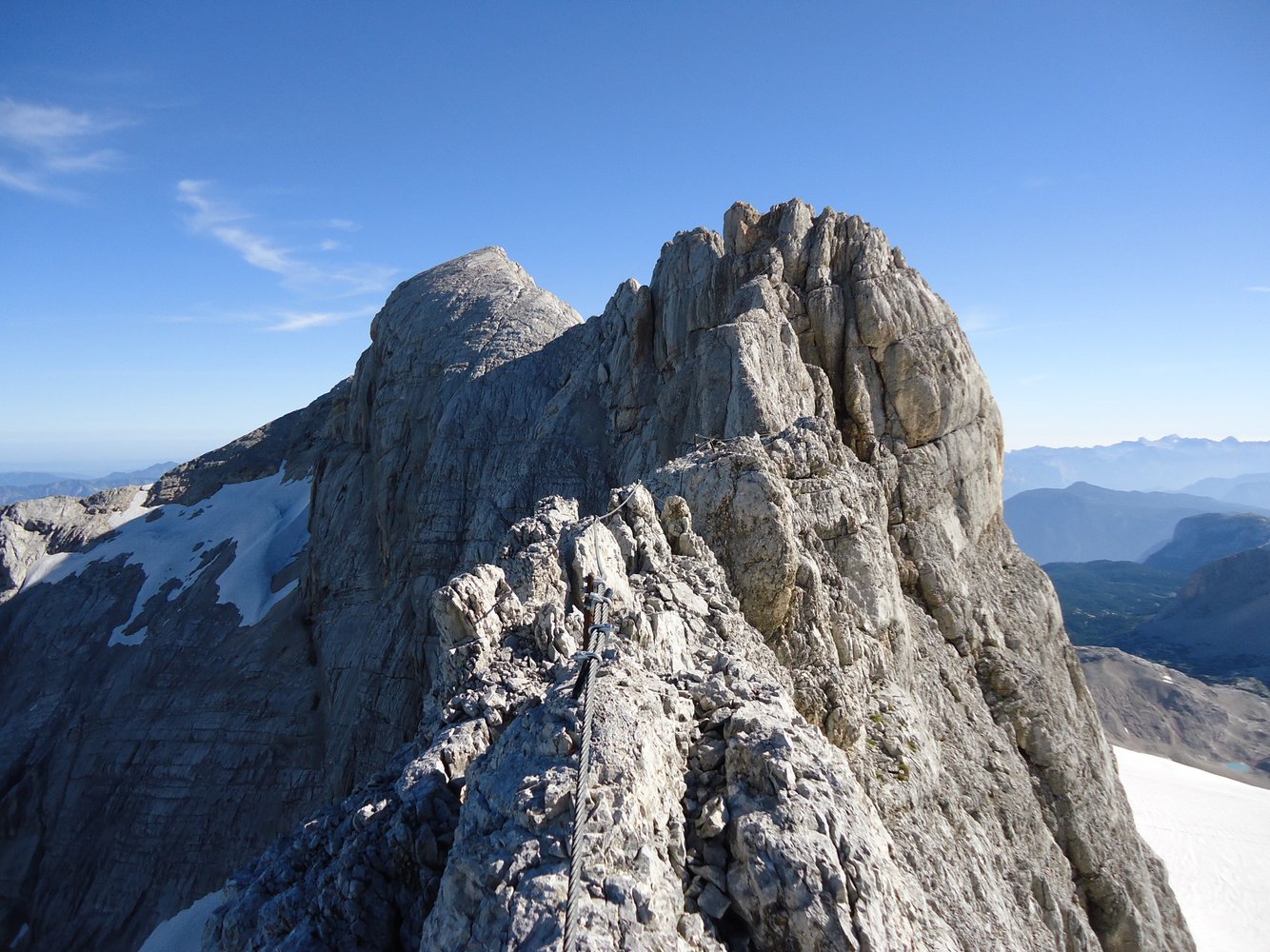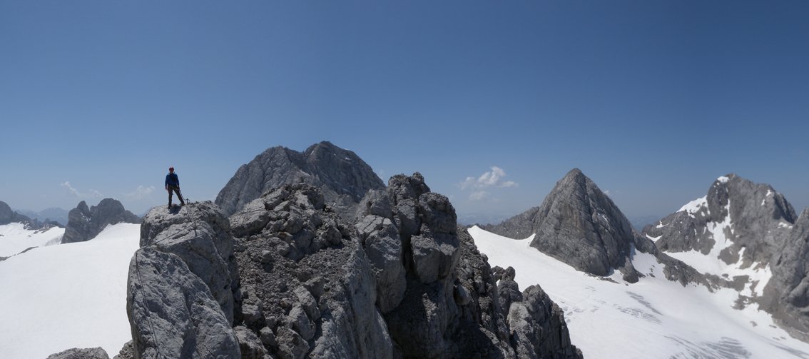 Gewaltiger Alpin-Klettersteig oberhalb des Großen Gosaugletschers nahe der Adamekhütte an den NW-Abbrüchen des Hohen Kreuz. Die Tour beginnt mit einer meist schattigen steilen Wand und wandelt sich bei der Simonyscharte in eine super schöne Grat-Ferrata. Gewaltige Ausblicke auf die Gletscherwelt des Dachsteinmassivs und den Hohen Dachstein begleiten einen bis auf den 2837 m hohen Gipfel. Ein alpiner Abstieg rundet diese Hochtouren-Ferrata am Ende gekonnt ab, je nach Tagesziel steuert man die Adamek- oder Simonyhütte an. Für Hochtourenliebhaber unter den Klettersteiggehern sicher eine der besten Klettersteigtouren im Zentralen Österreich!