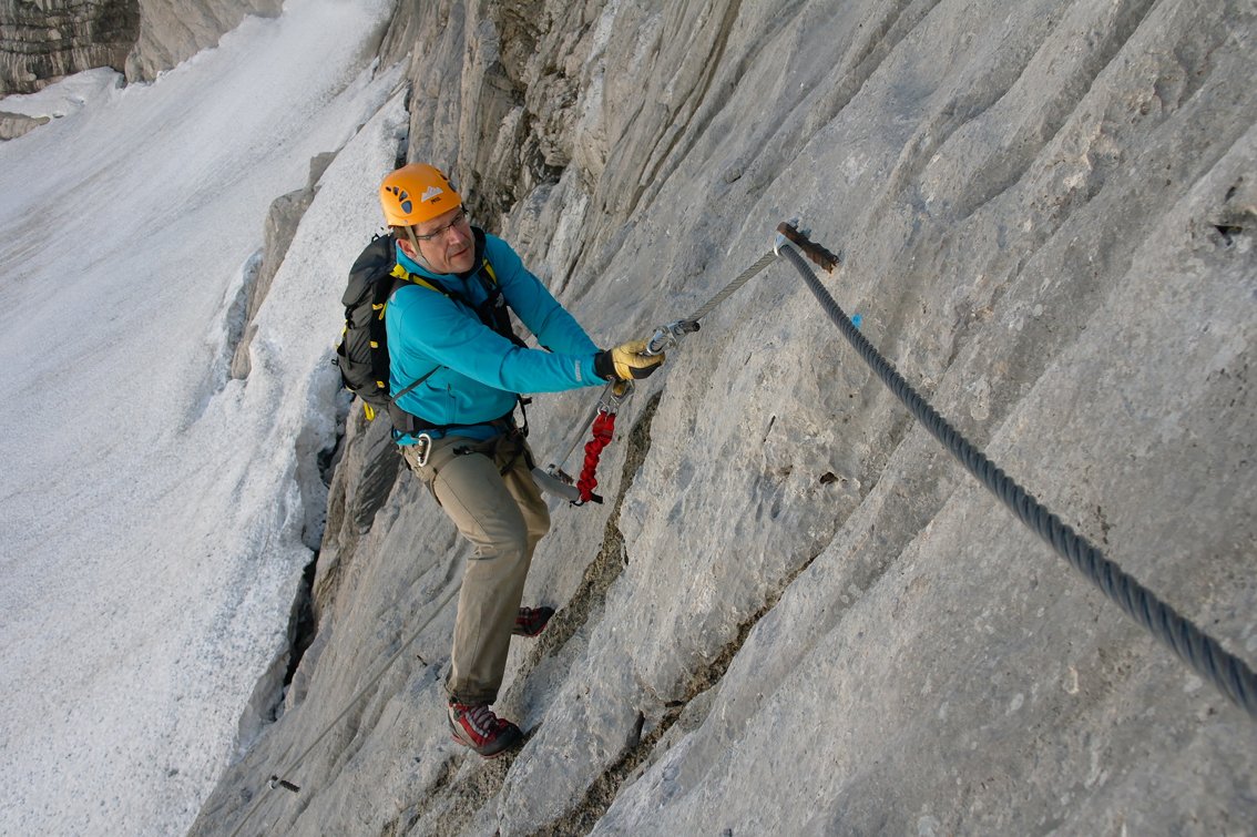 Komplette Klettersteig- und Gletscherausrüstung - vor allem im Spätsommer und Herbst ist der Zustieg evtl. heikel.