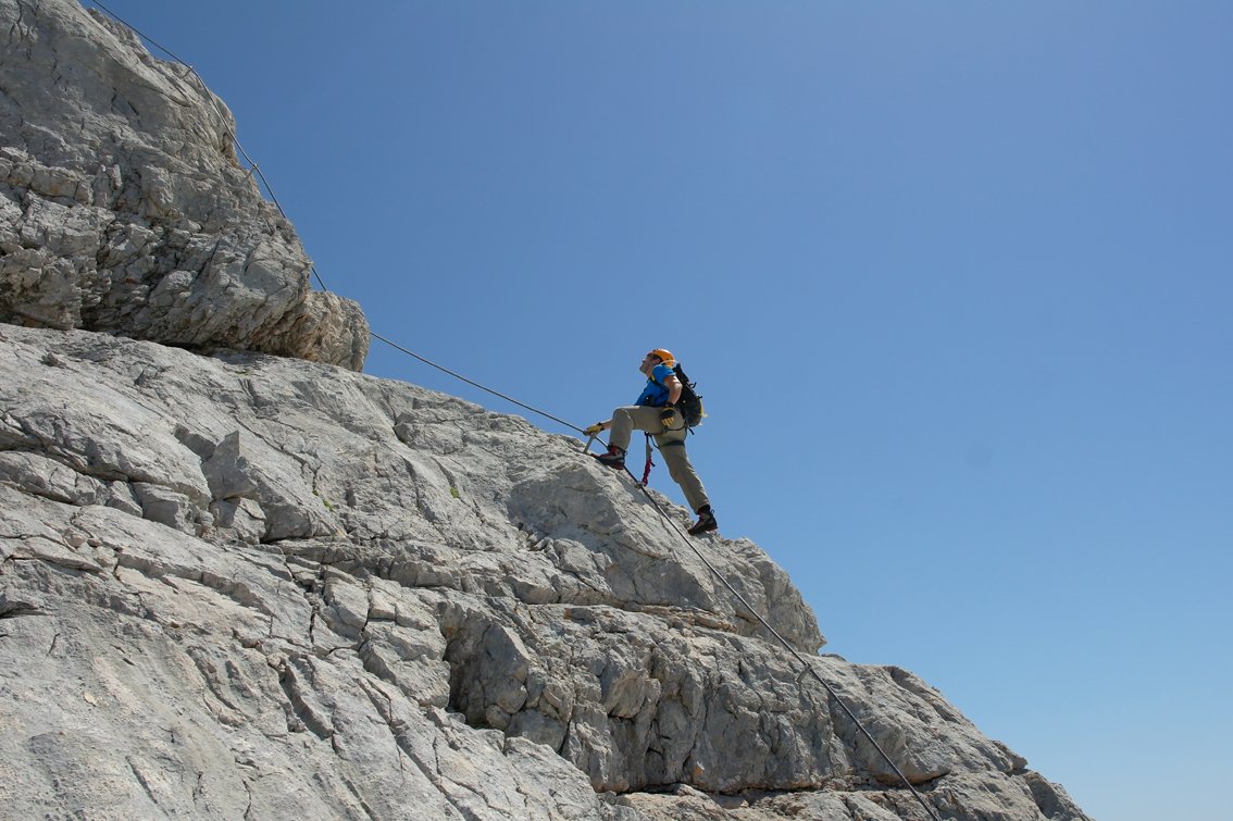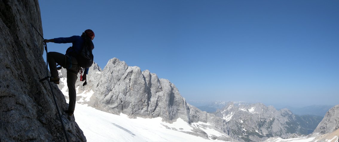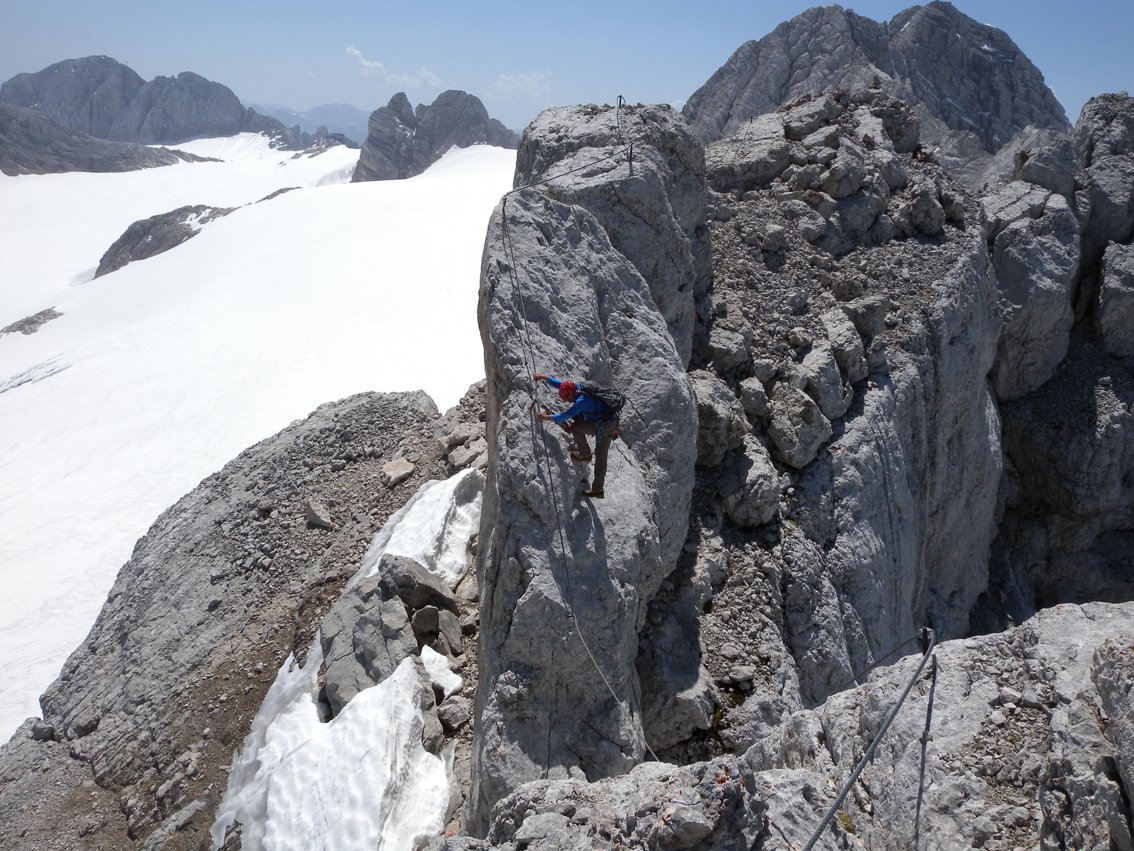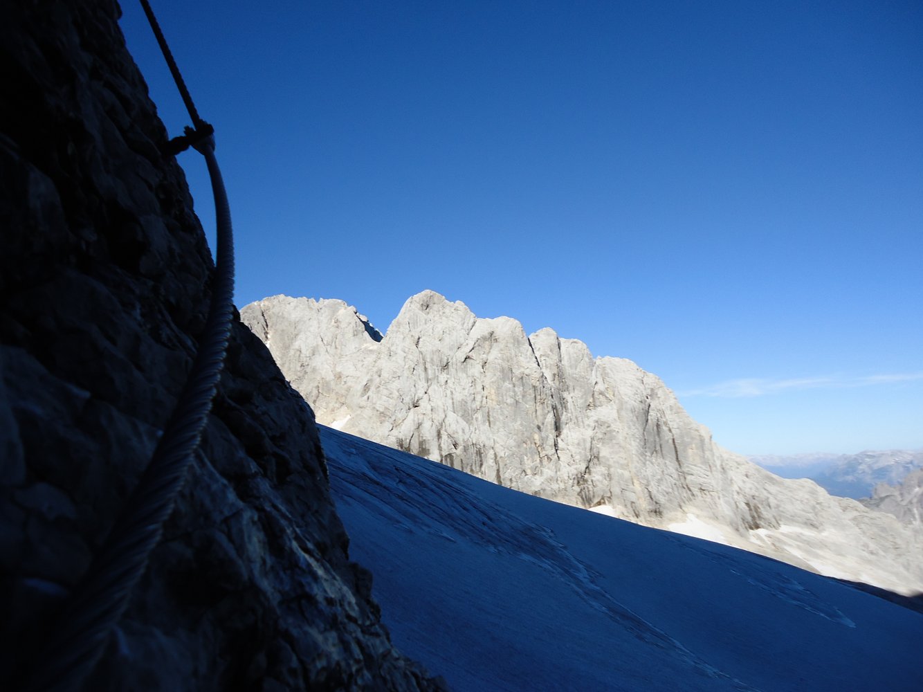 Sehr gut mit dickem "Dachstein-Stahlseil" abgesichert.