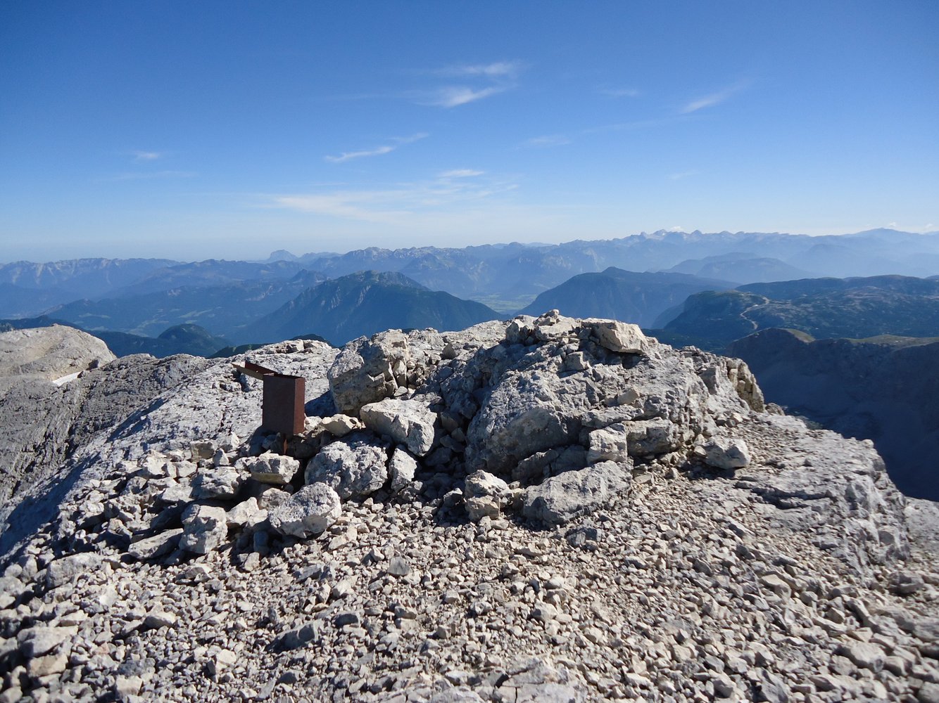 Vom Gipfel des Hohen Kreuzes auf dem Normalweg (markiert, aber ausgesetzt) zum Niederen Kreuz und weiter zum Hohen Ochsenkogel. Danach steigt man zum Hohen Trog (2359 m) ab. Dort entweder rechts zur nahen Simonyhütte (ca. 2 Stunden ab Hohen Kreuz) oder links in langem Marsch retour zur Adamekhütte (ca. 4 Stunden ab Hohen Kreuz).