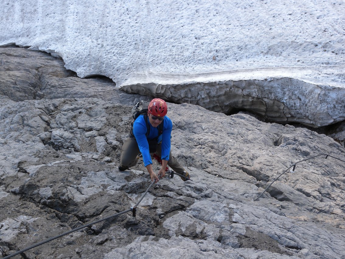 Hochalpiner Klettersteig für den man Gletschererfahrung für den Zustieg benötigt. Im Herbst und nach kalten Nächten können im unteren, schattigen Teil Fels-Passagen vereist sein.