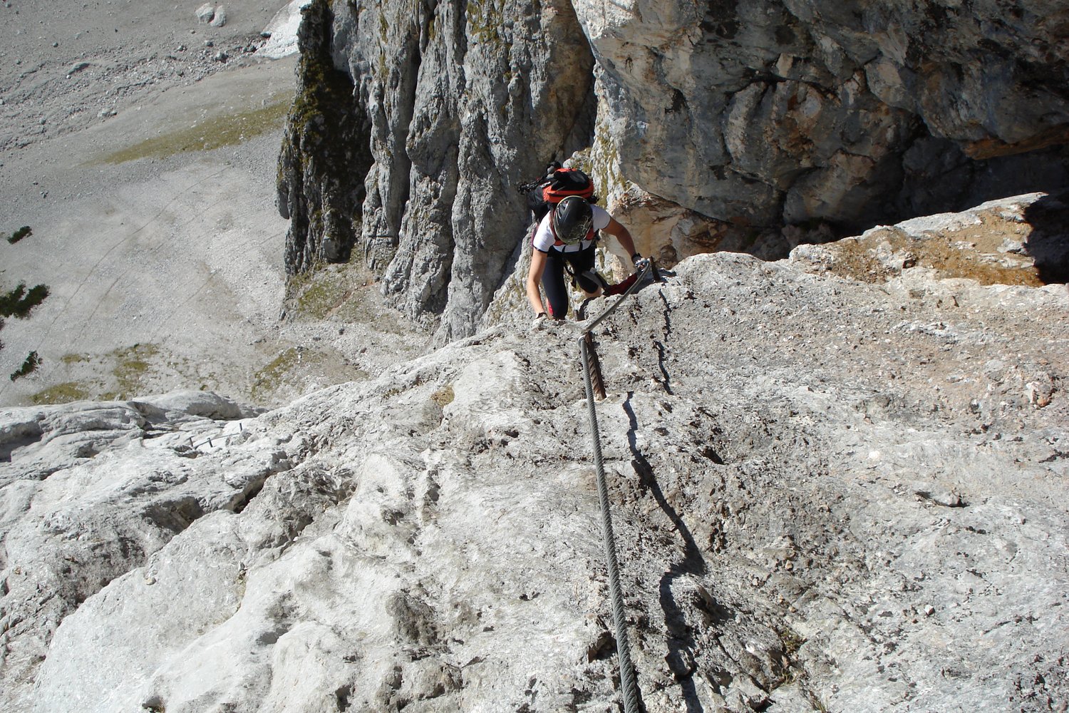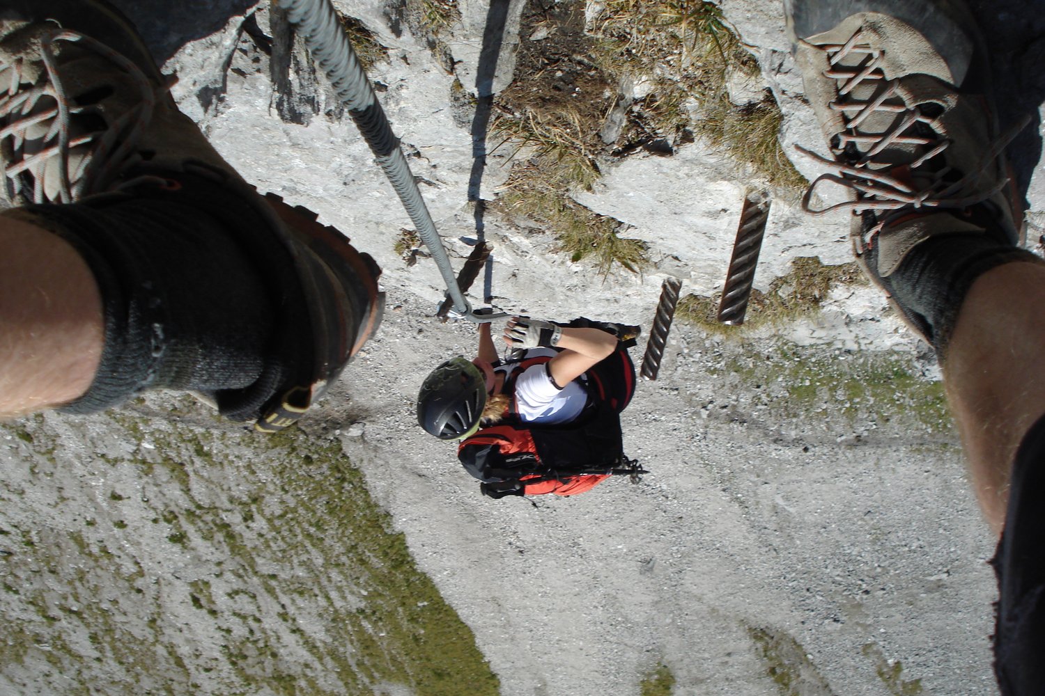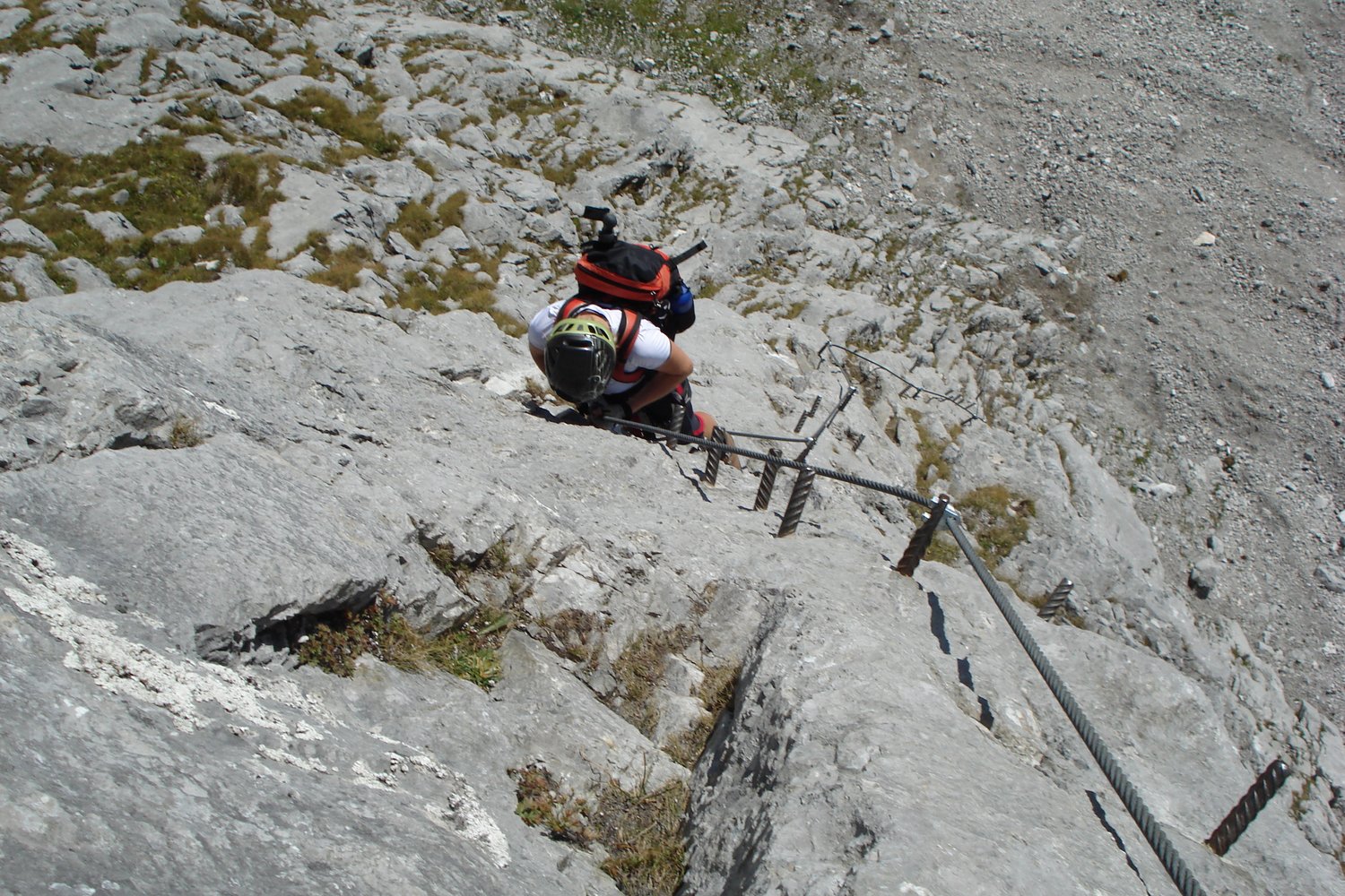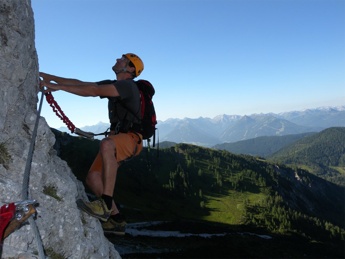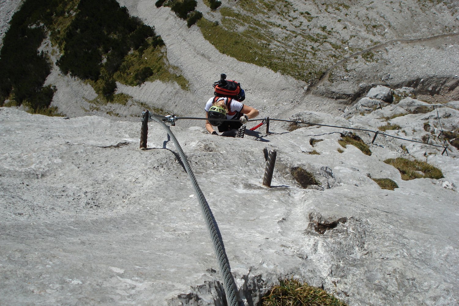 Super-Ferrata Dachstein: "Anna", gemeinsam mit den Kletterseigen "Der Johann" und dem "Schulteranstieg" auf den Hohen Dachstein - diese Klettersteigroute ist mit 1200 Hm reinem Klettersteig (Einstieg bis Ausstieg - ca. 1800 Hm gesamt inkl. Zustieg) eine der längsten Klettersteigtouren der Alpen.