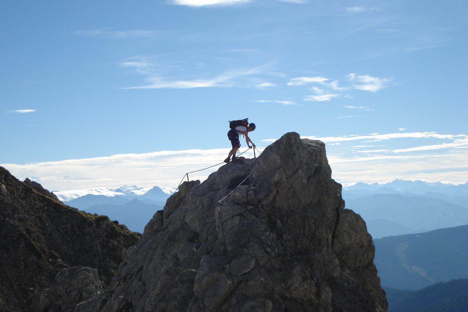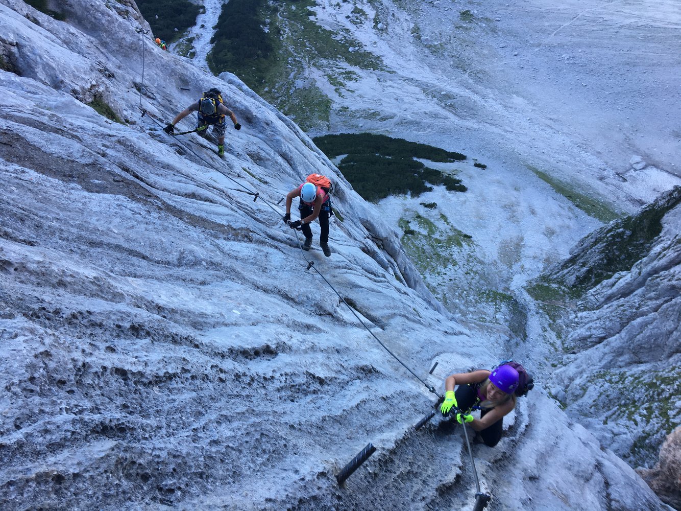 Diese Klettersteige sind aber im Sommer öfter hoffnungslos überlaufen und zwischen Anna und Johann Klettersteig ist auch ein steiles, oft gefährliches Schneefeld, für das man eventuell Steigeisen und auch ensprechende Kenntnisse braucht. Interessante Alternativen finden sich auf der Nordseite des Dachsteins, wo der Seewand Klettersteig oder die tollen Steigen am Gausausee oder Krippenstein (alle Infos siehe bergsteigen.com!) großartige Klettsteigabenteuer bieten.