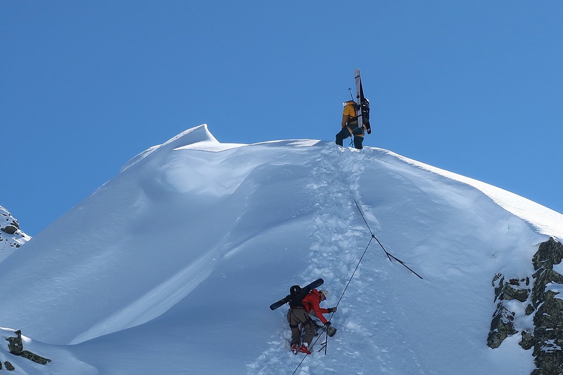 Der Arlberger Winterklettersteig - eine alpines Abenteuer, mit den Skiern am Rücken auf die Vordere Rendlspitze! Es ist ein einzigartiges Erlebnis, mit den Skiern am Rücken zur Vorderen Rendlspitze aufzusteigen und das Panorama des Arlbergs zu genießen. Zur Krönung nach dem 850 m langen Grat wählt man eine der unzähligen Skirouten und schwingt im lockeren Pulver fast 1500 Hm ins Tal.