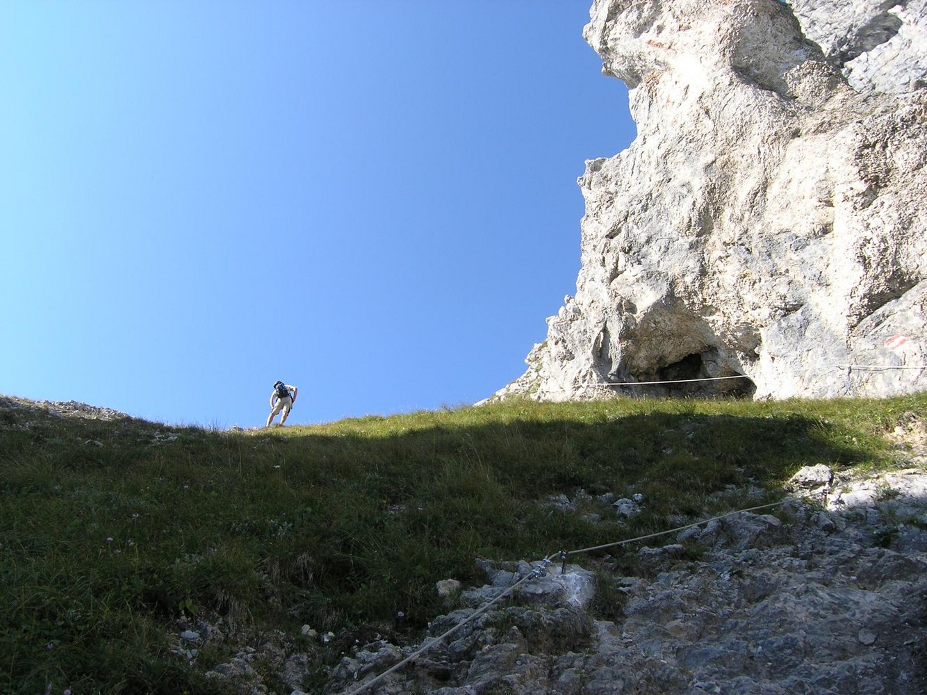 Kein klassischer Klettersteig, sondern ein nur stellenweise versicherter alpiner Steig (schwarzer Bergweg).