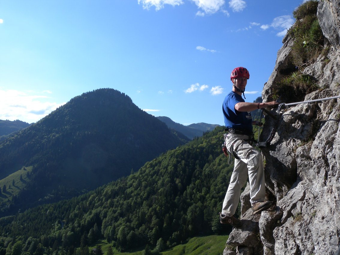 Der Bergkameraden Klettersteig ist der leichteste Wanddurchstieg im talnahen Klettersteigpark bei der Ottenalm. Die Tour hat zwei Seilbrücken und einen knackigen Überhang zu bieten. In Verbindung mit dem Zustieg über den Kammweg eine schöne Halbtagestour.