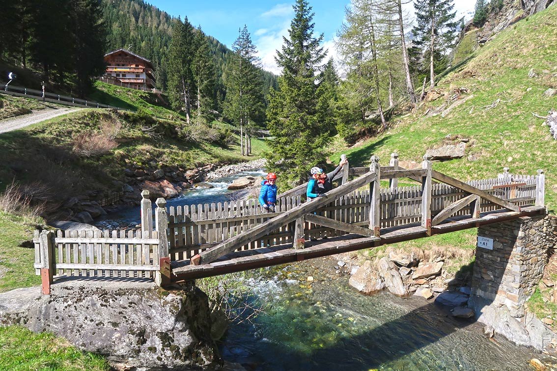 Achtung mit Kindern: Direkt bei der Brücke liegt ein großer, flacher Felsblock, welcher hinten (etwas unscheinbar) steil zum Bach abfällt (absturzgefahr).